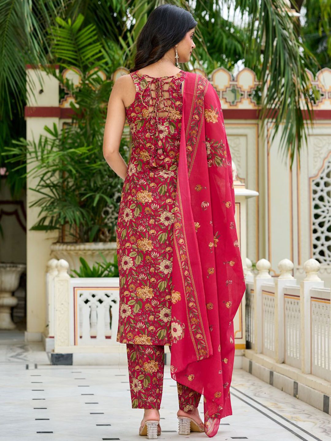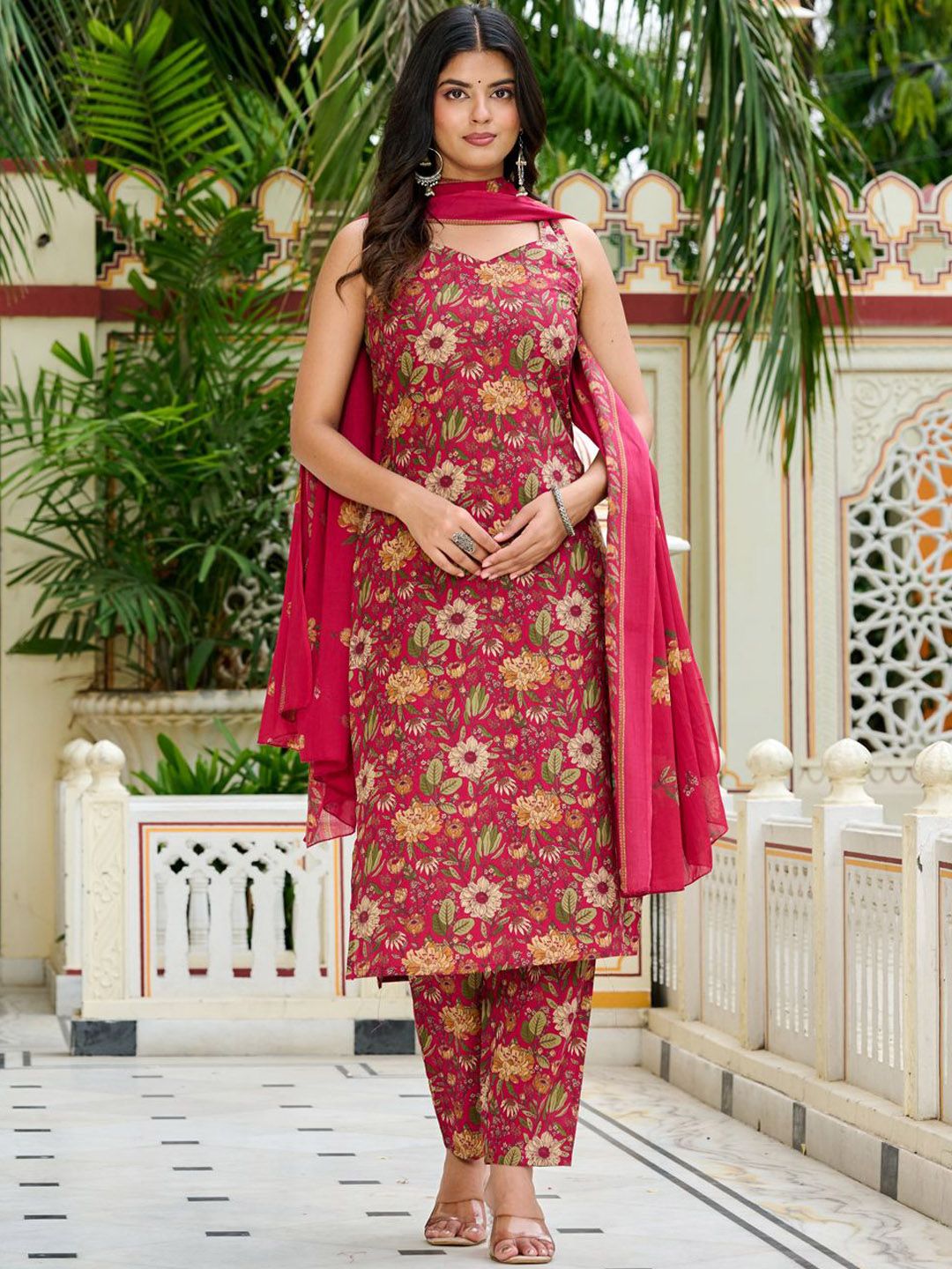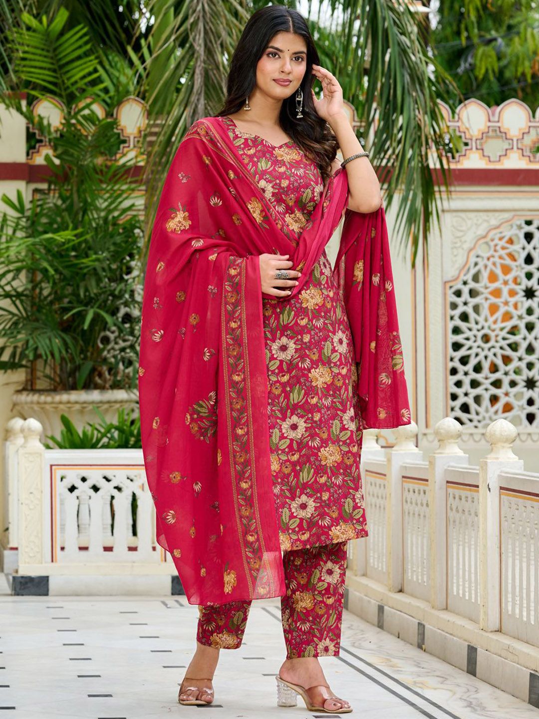 KEIYONA Floral Printed Pure Cotton Kurta With Trousers & Dupatta