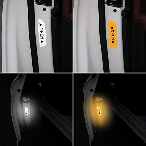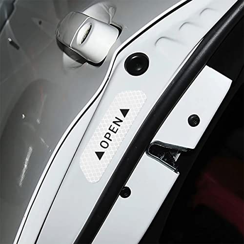 Kelenate® (White) 4PCS Reflective Open Prompt Stickers for Car Door, 3.6 Inch Auto Safety Warning Decals, Night Visibility Anti-Collision Protective Strip Compatible with Opl Crsa
