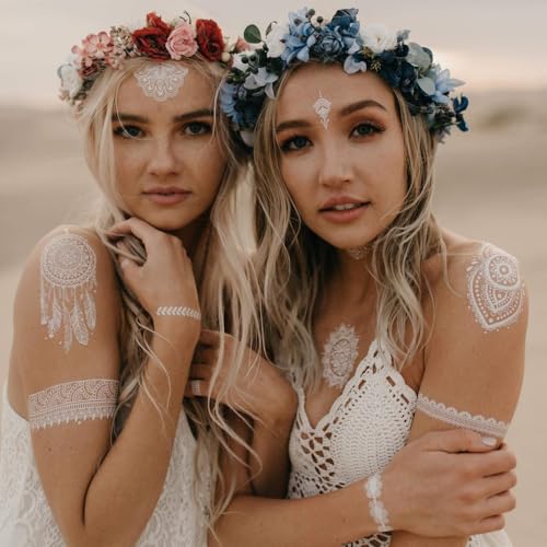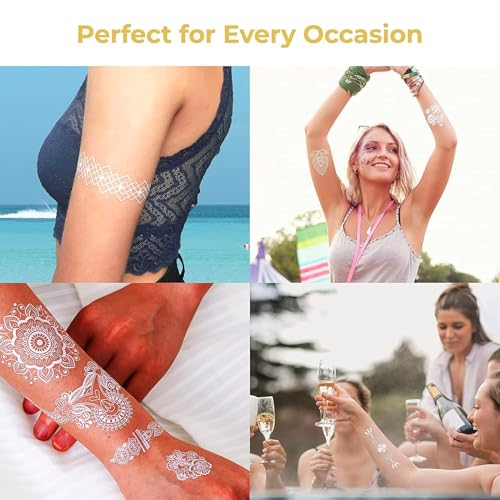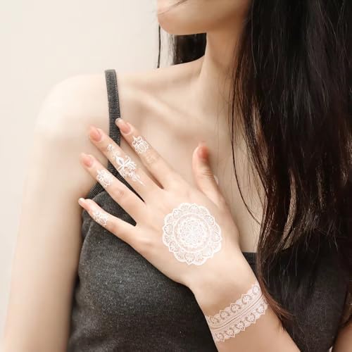 KESRIN+ Mehndi Stickers for Women & Girls - Waterproof Henna Tattoo Stickers Mandala & Lotus Flower Design Hand & Arm Band Tattoos (WHITE, 4)
