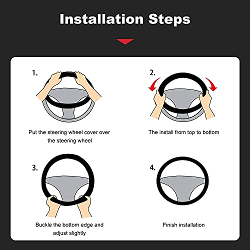 ??PREMIUM MATERIALS?: Made Of Soft And Durable Microfiber Leather, Non-slip, Stable, Heat-resistant, Wear-Resistant. The Cover Not Only Gives Your Car A Stylish Touch, It Also Massages Through Its Thicker, Softer And More Comfortable Feel And Offers A Safer Performance In Terms Of The Grip Of Your Steering Wheel. ??COMPATIBILITY?: Suitable For Steering Wheel 37-39 Cm (Outer Diameter). Dimension Fits Car Steering Wheel Cover With Diameter Of 15 Inch. Fits Very Well On Most Standard Steering Wheel Sizes, Fits Most Steering Wheels. ??DRIVING PLEASURE?: Sport-Style Brings Vivid Colors Into Your Car, The Steering Wheel Covers Leather Offers Users A Very Comfortable Driving Pleasure, While The Steering Wheel Cover Provides A Visual Enhancement Of The Vehicle. ??PROTECTIVE & BREATHABLE?: The Attractive Cover Protects And Improves The Appearance Of Old Or Dirty Steering Wheels And Protects Your Hands From Hot And Cold Extremes. The Cover Is Breathable And Absorbs Sweat And Moisture Without Annoying Odors. The Cover Has A Good Air Permeability And A Good Heat Preservation. The Cover Is Perfect For A Nice Ride In Any Weather. ??EASY TO INSTALL?: Extend The Existing Steering Wheel, Easy Attachment. Just Put The Cover On The Steering Wheel. Press And Hold The Upper Part Of The Cover And Slowly Lower It With Both Hands On Both Sides To Tighten.