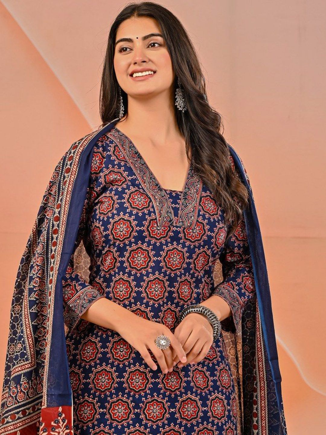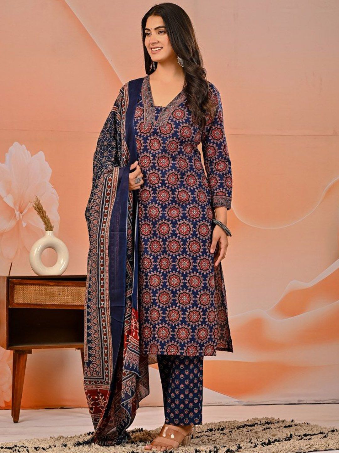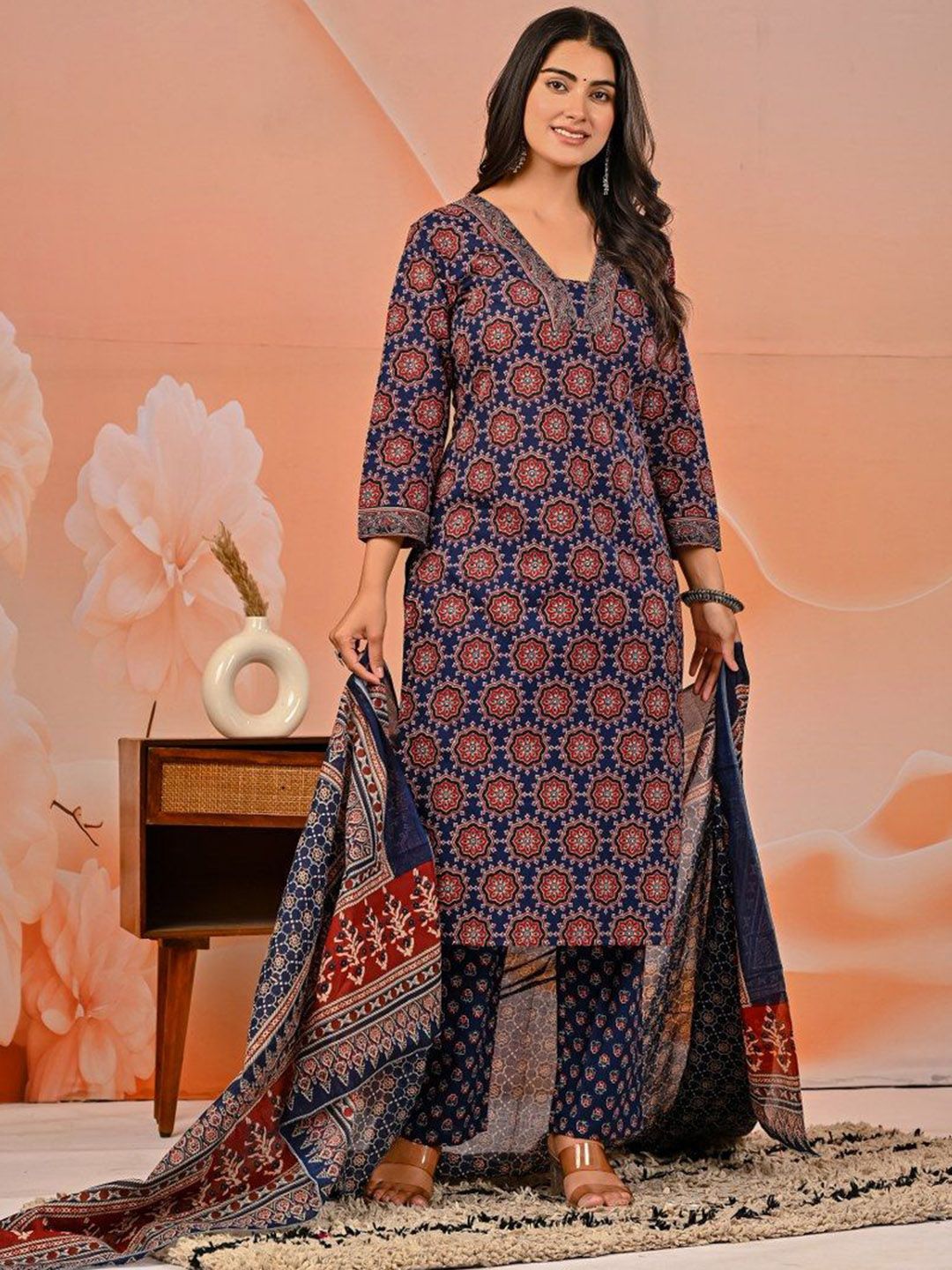 Khatri Creations Women Floral Printed Pure Cotton Kurta & Palazzos With Floral Dupatta