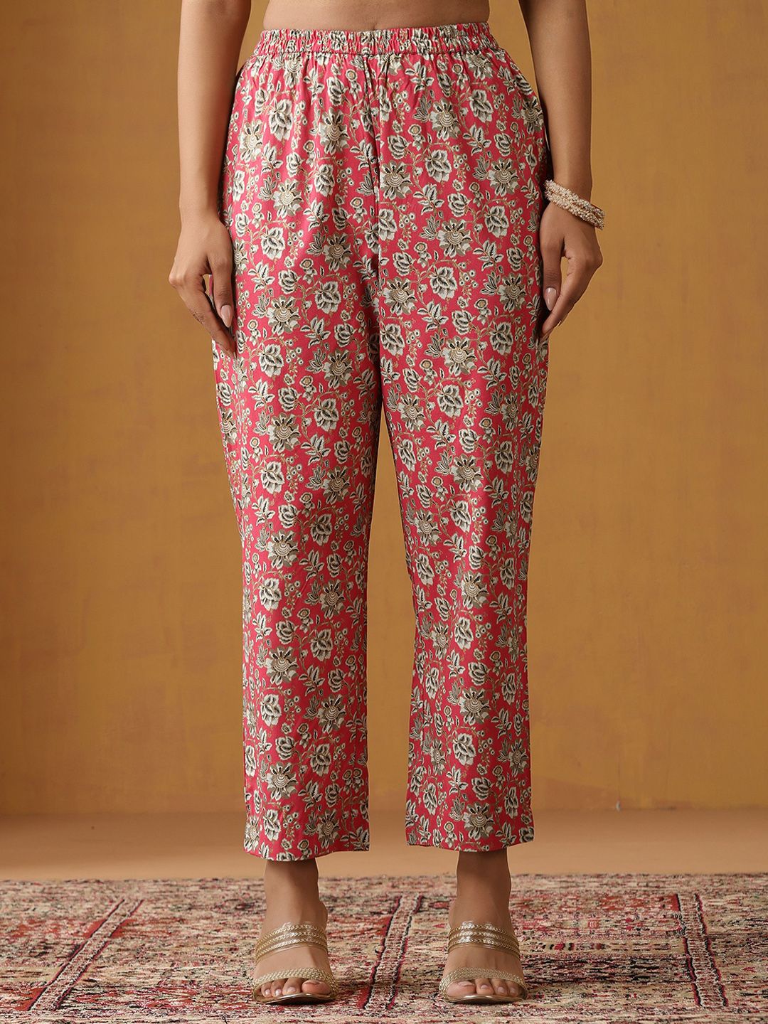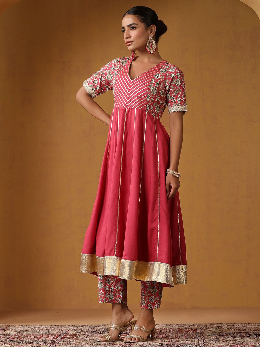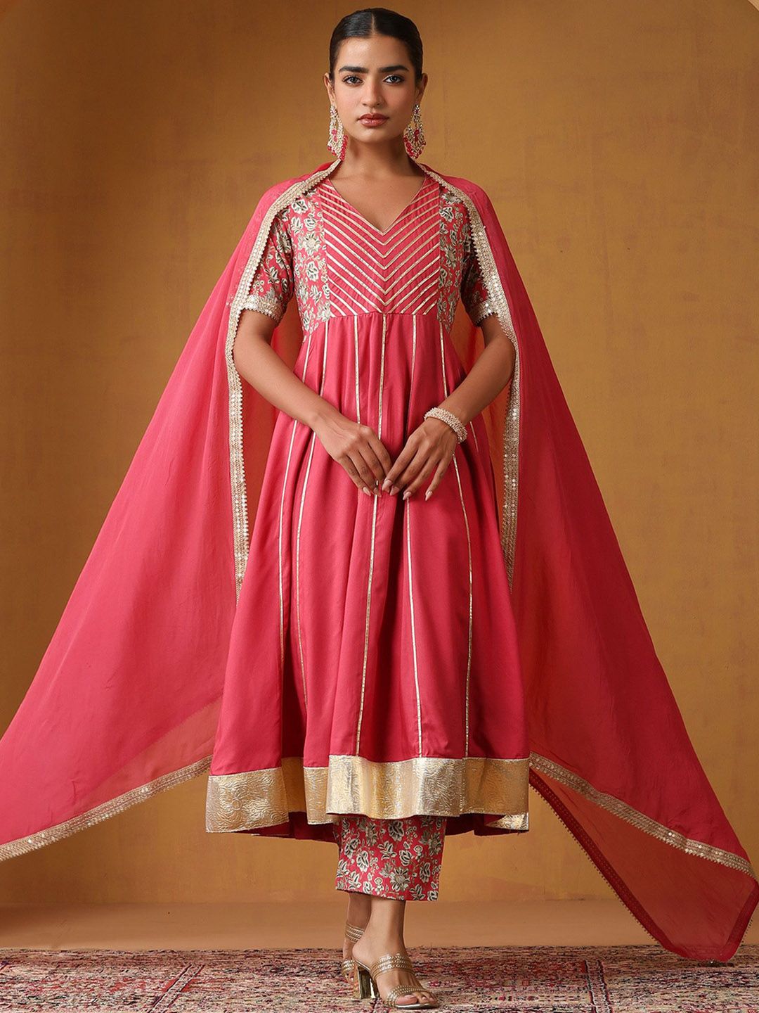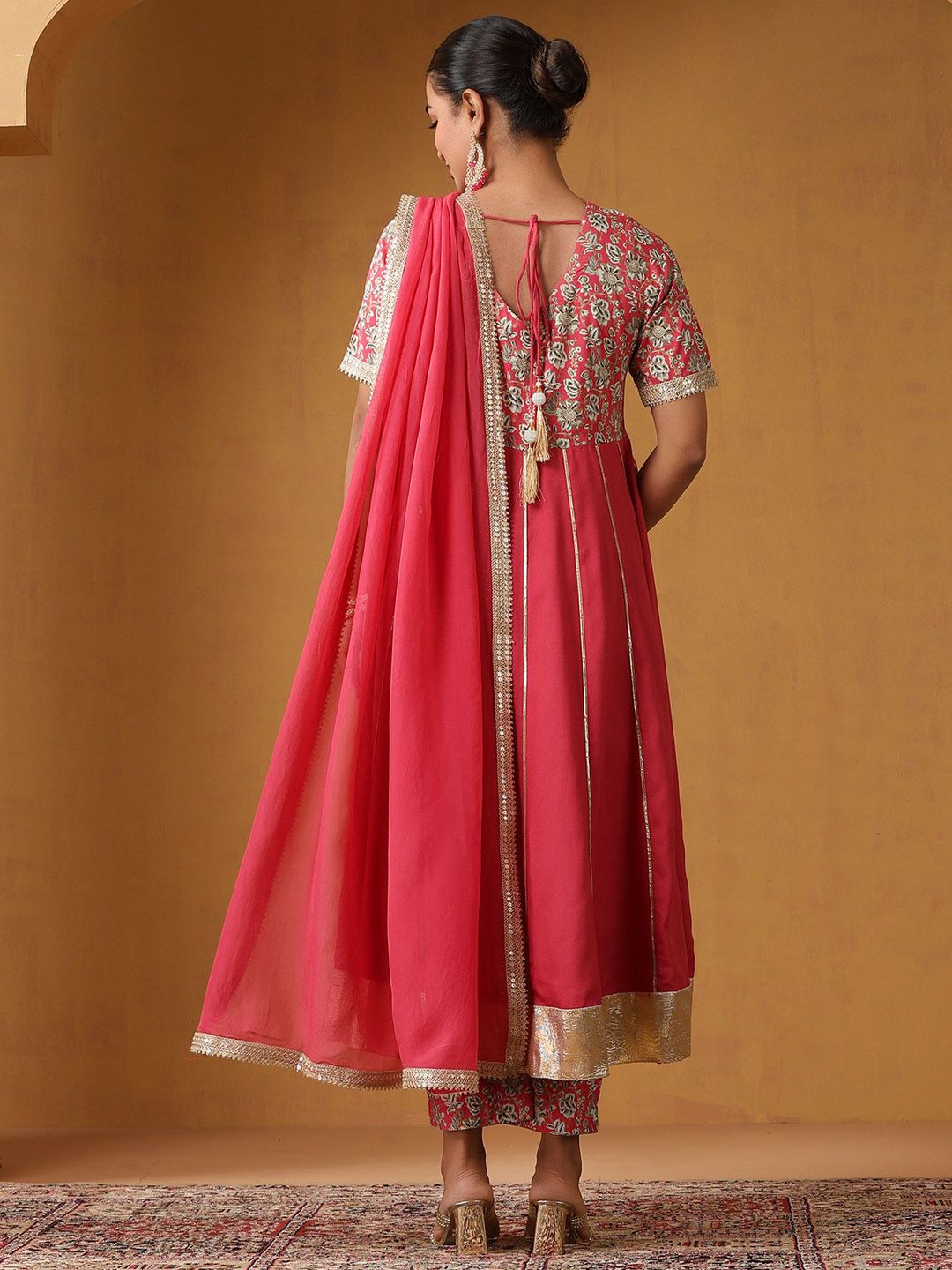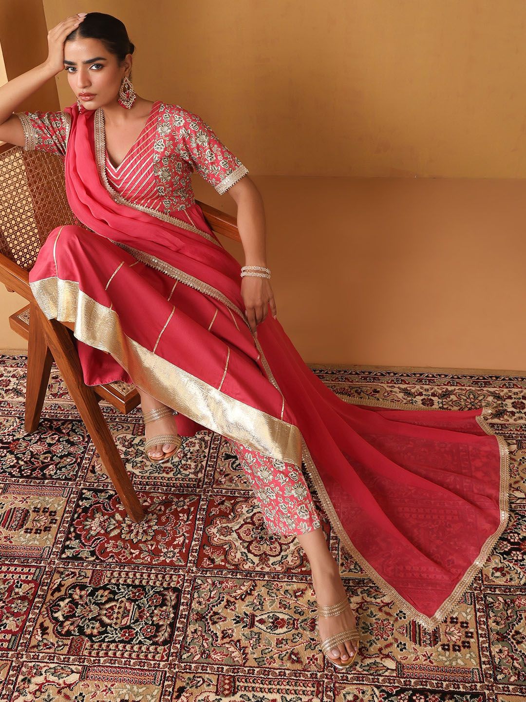 Khushal K Floral Embroidered Anarkali Sequinned Kurta With Palazzos & Dupatta