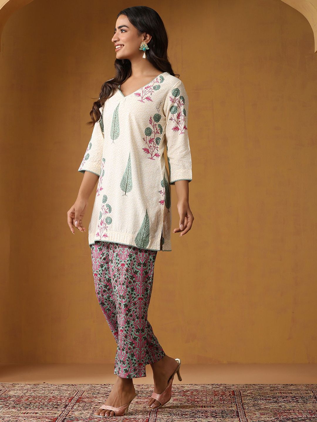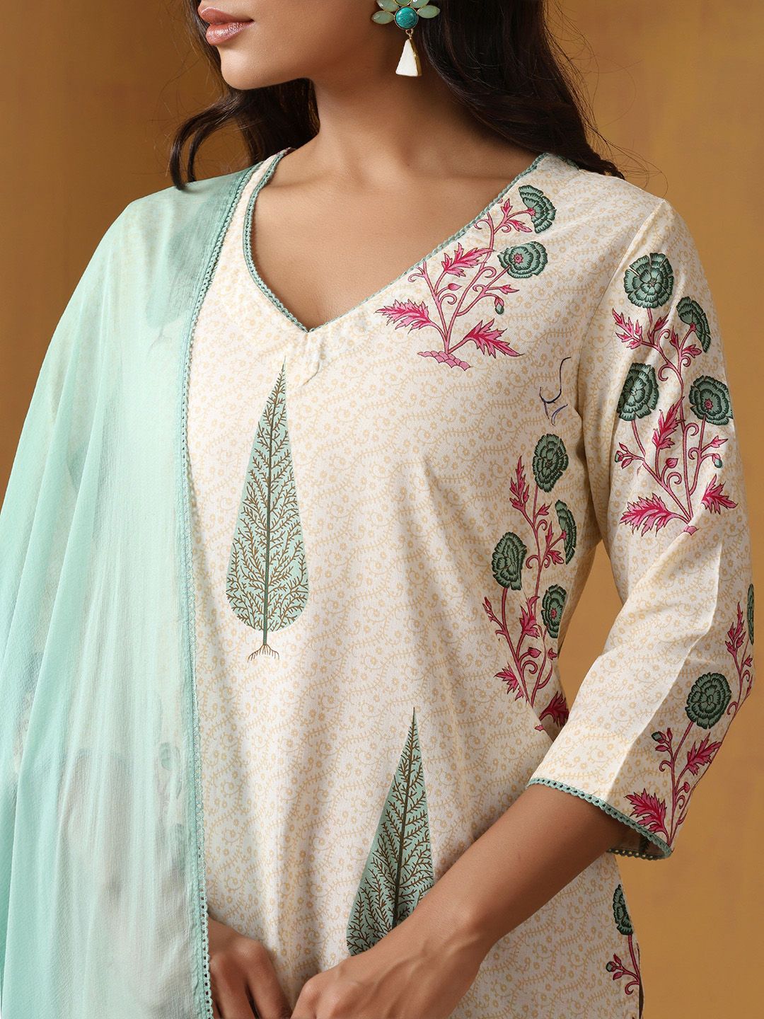 Buy this stylish Khushal K Floral Printed V-Neck Pure Cotton Straight Kurta With Palazzo & Dupatta at Marincart Nepal. This product offers great quality and value. Perfect for those looking for the latest trends in fashion. Get yours now at unbeatable prices.
