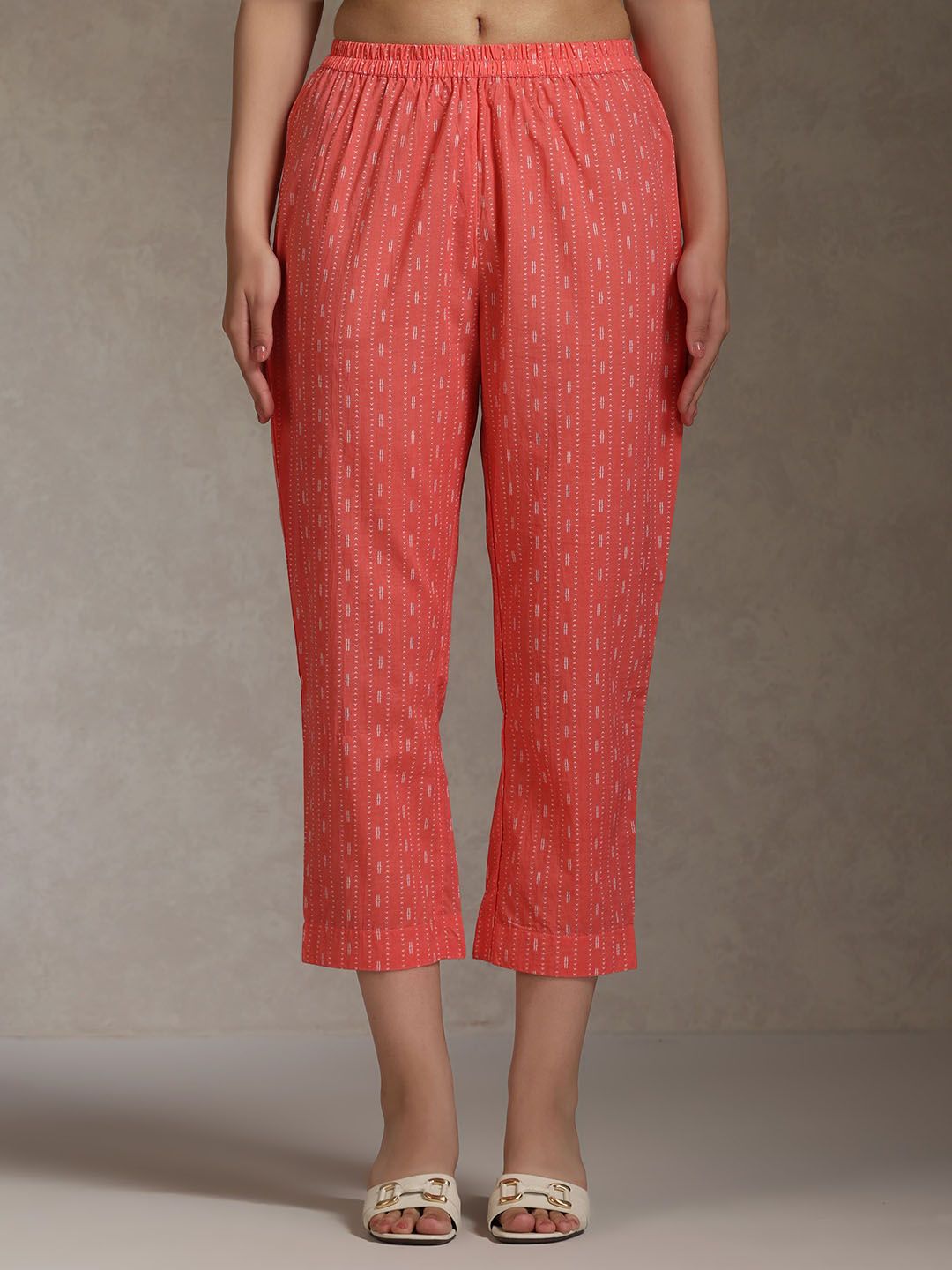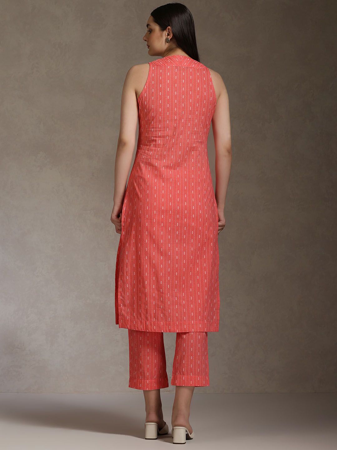 Khushal K Geometric Printed V-Neck Pure Cotton Straight Kurta With Trousers