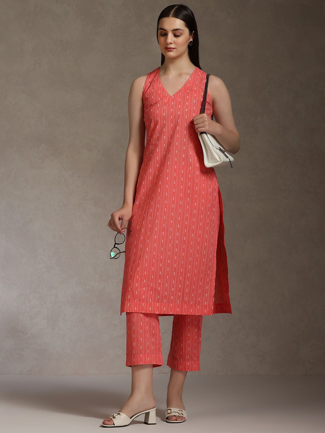 Buy this stylish Khushal K Geometric Printed V-Neck Pure Cotton Straight Kurta With Trousers at Marincart Nepal. This product offers great quality and value. Perfect for those looking for the latest trends in fashion. Get yours now at unbeatable prices.