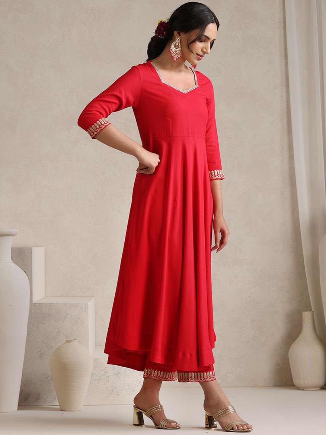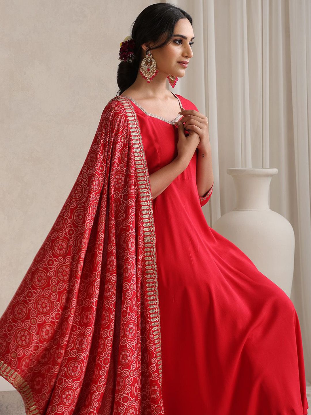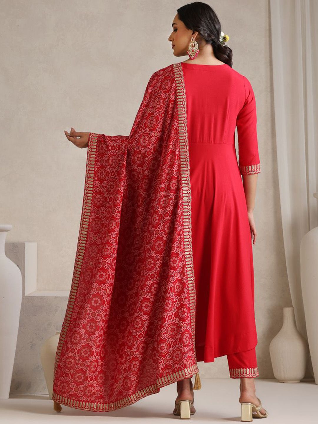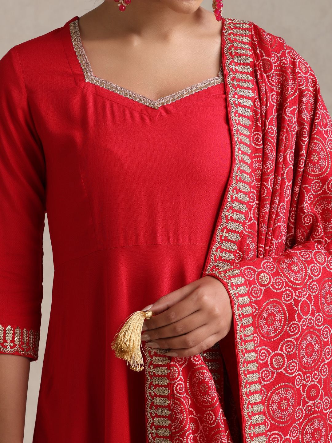 Khushal K Women Anarkali Zari Kurta with Palazzos & With Dupatta