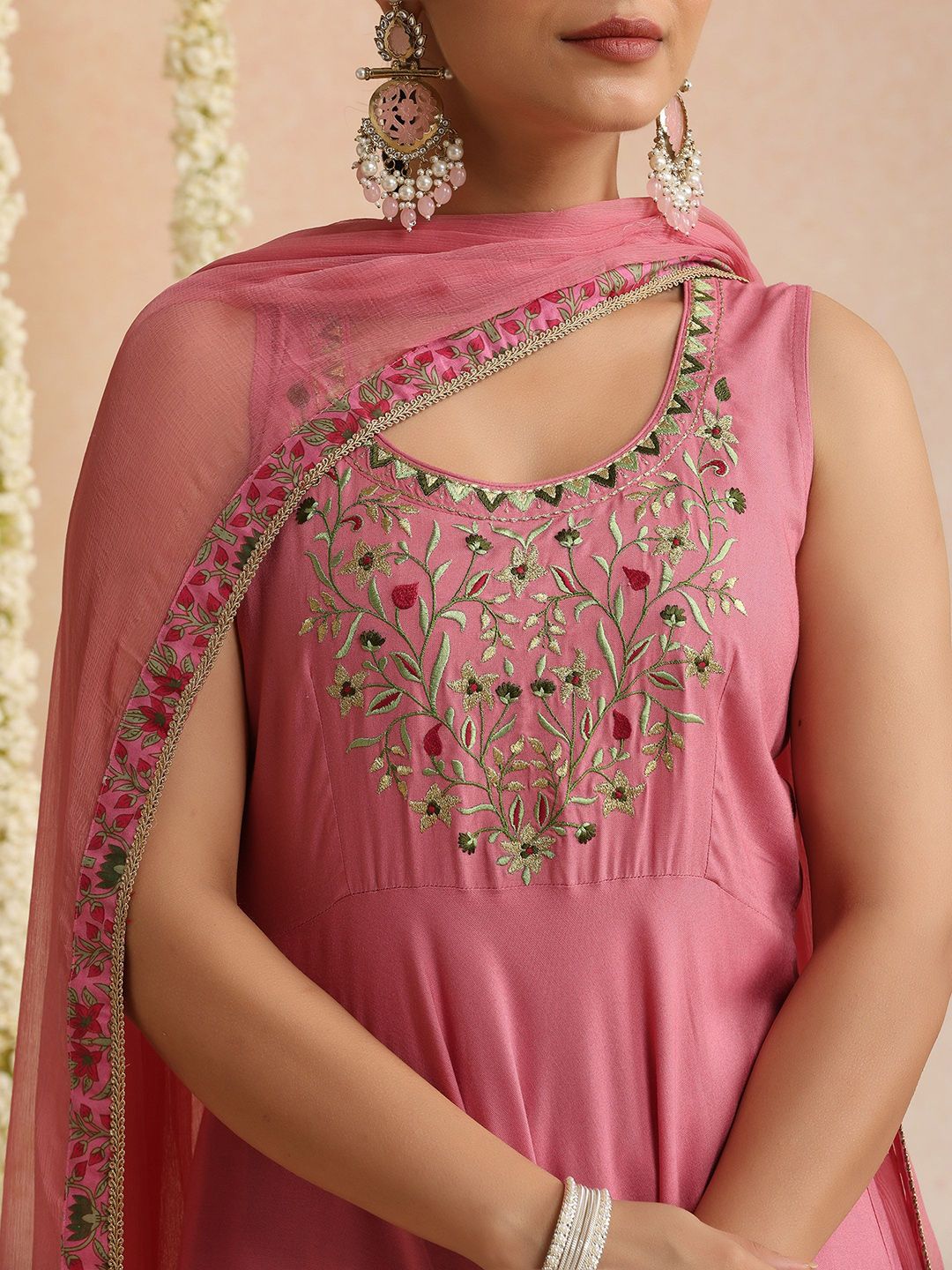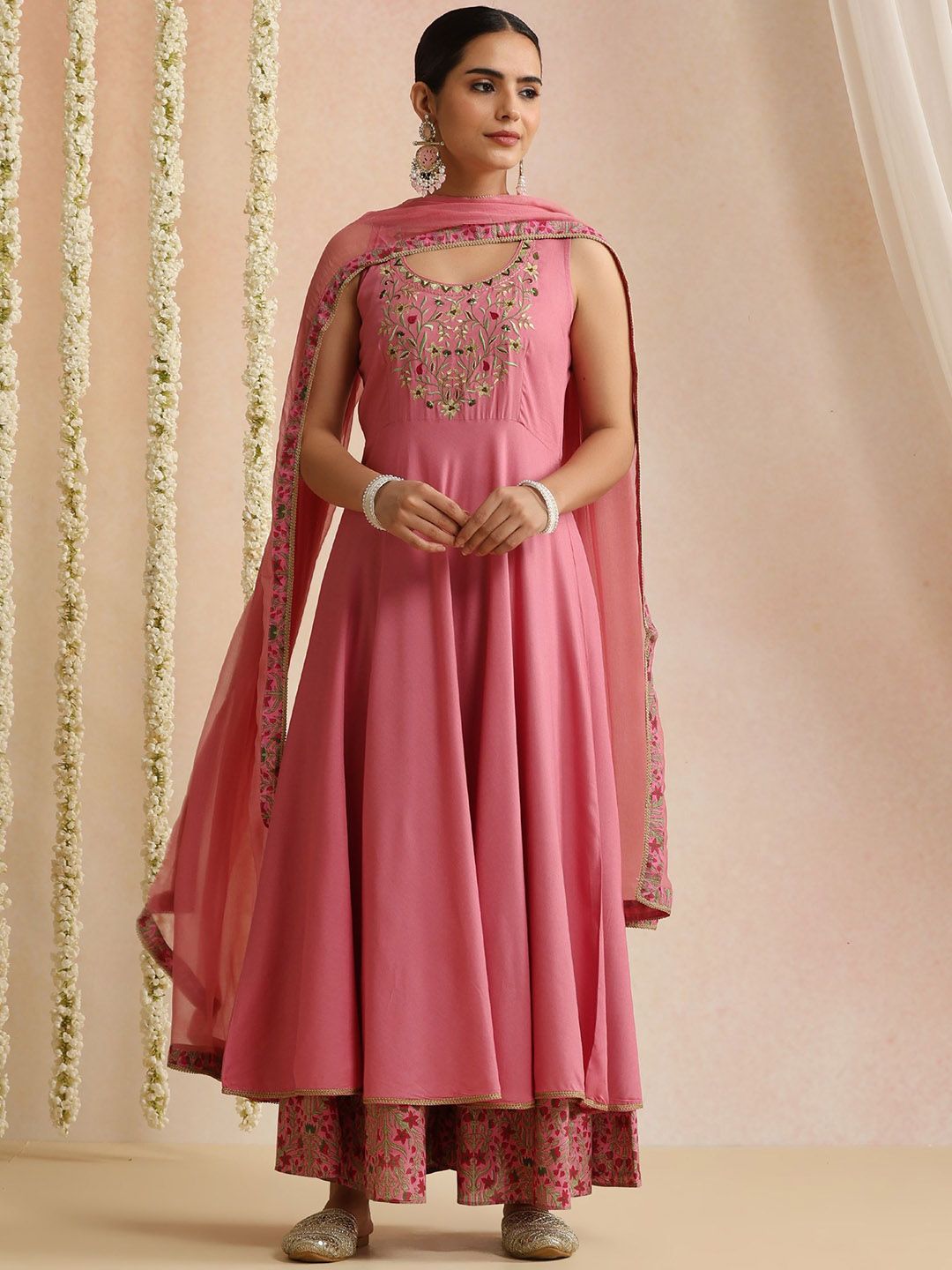 Khushal K Women Embroidered A-Line Kurta with Palazzos & Dupatta