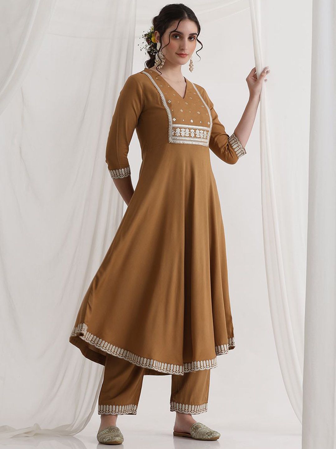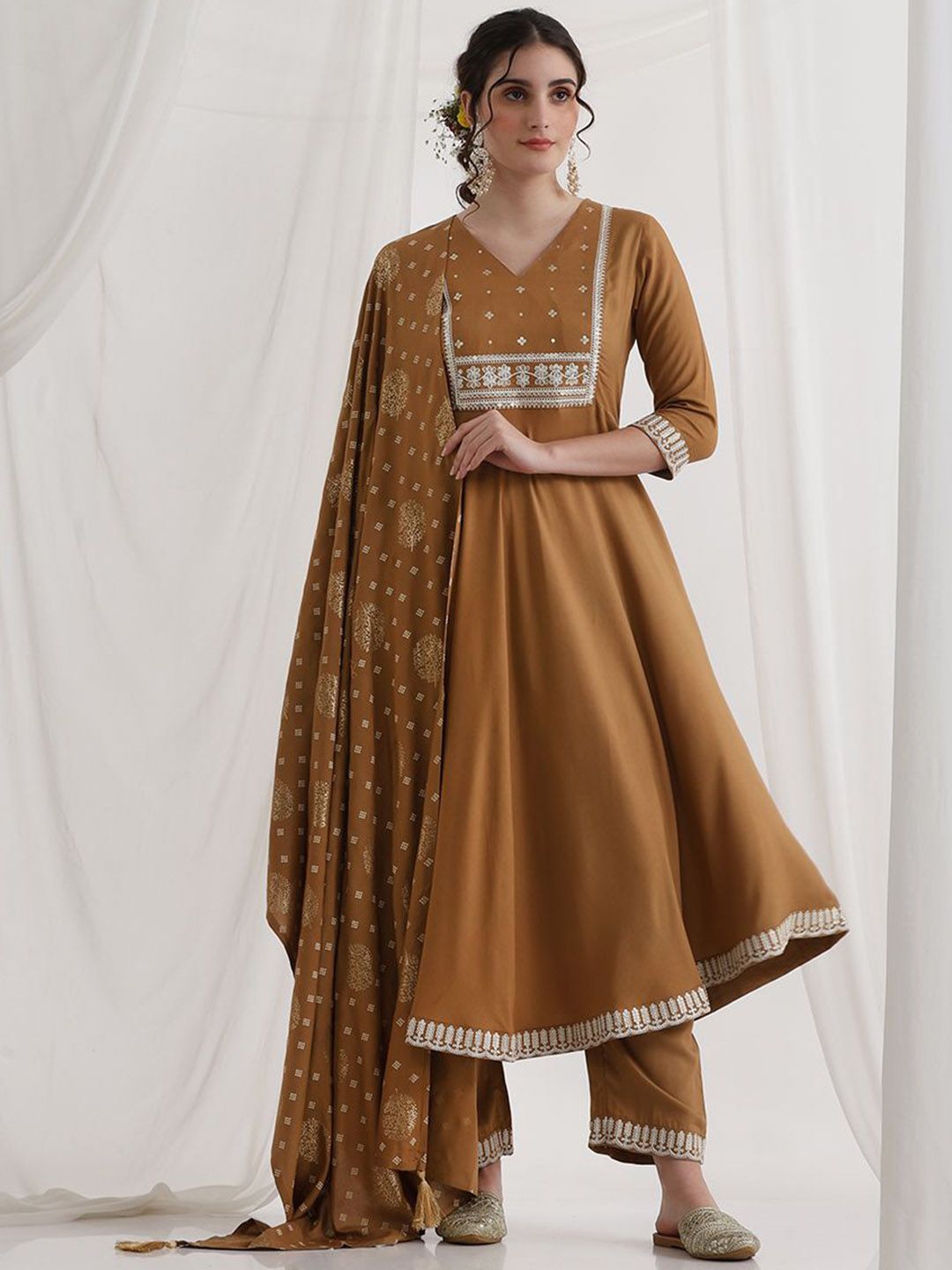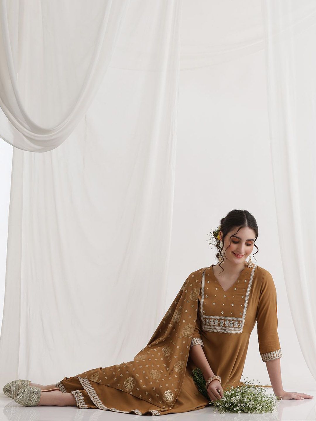 Khushal K Women Ethnic Motifs Embroidered Kurta with Trousers & Dupatta