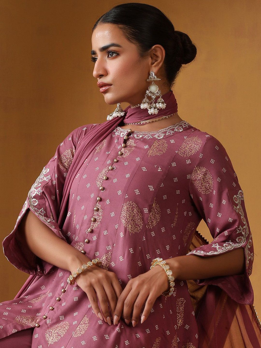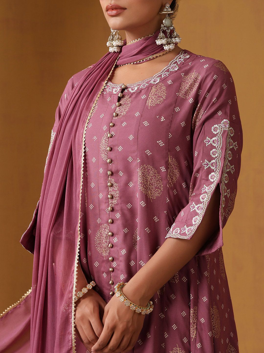 Khushal K Women Ethnic Motifs Embroidered Pure Cotton Kurta with Palazzos & Dupatta
