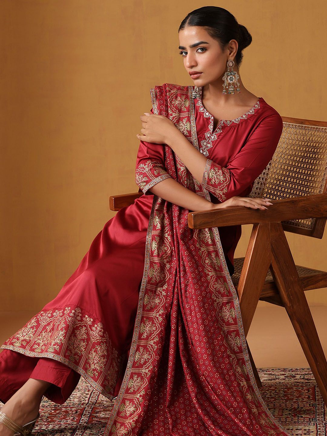 Khushal K Women Ethnic Motifs Embroidered Regular Kurta with Palazzos & With Dupatta