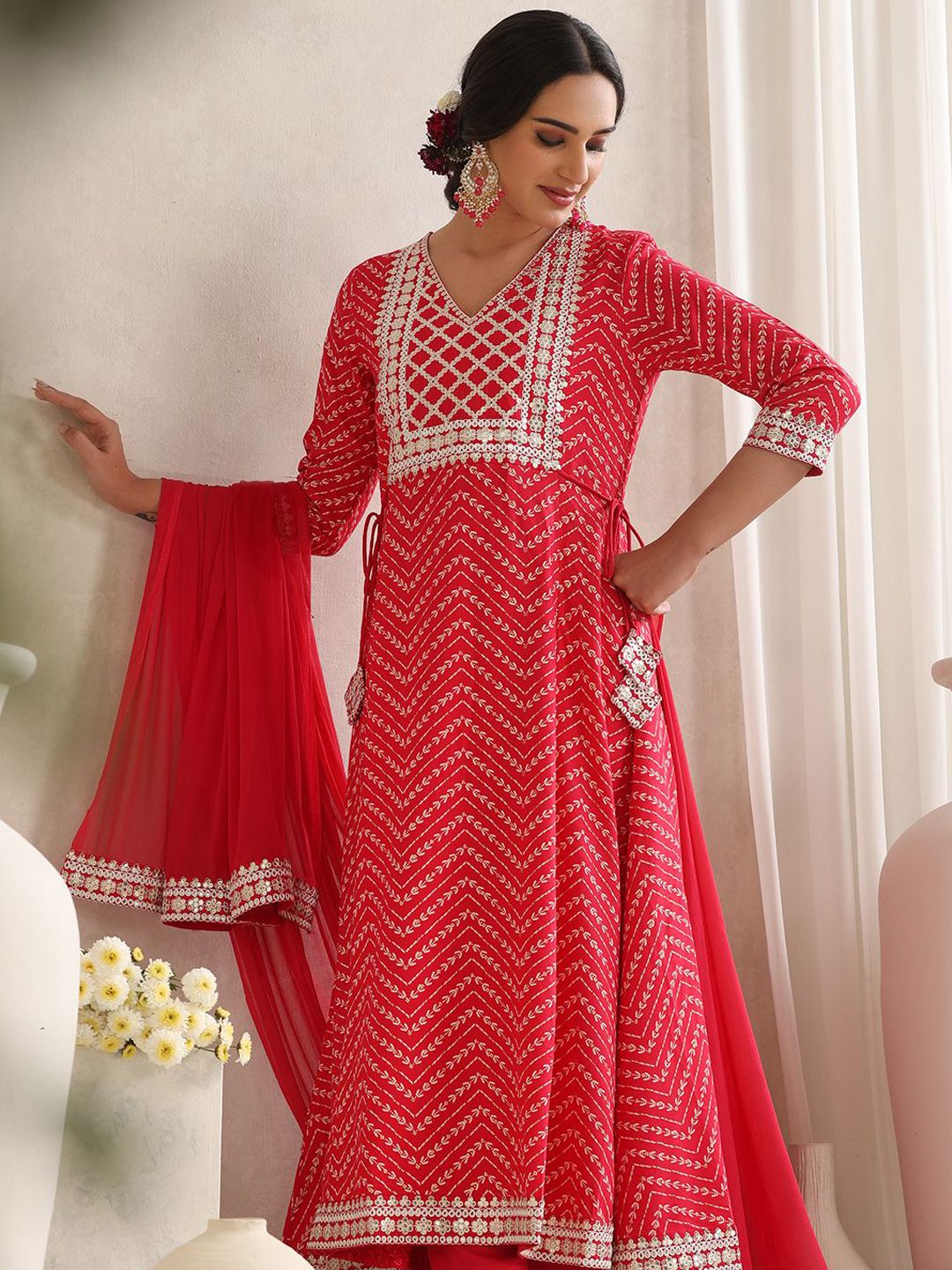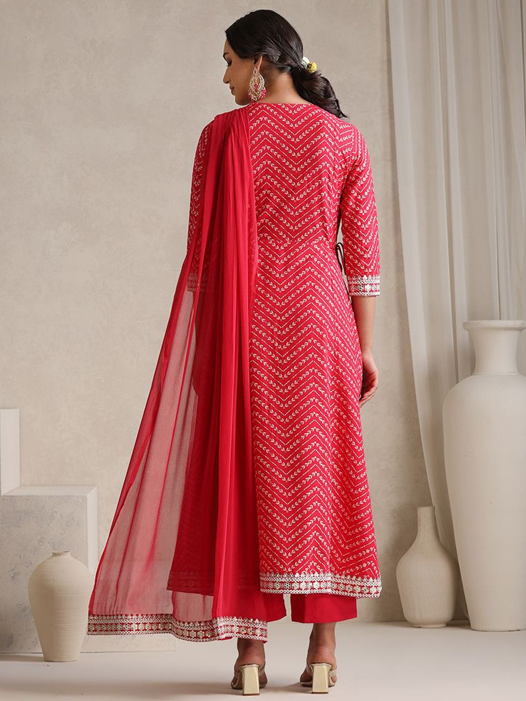 Khushal K Women Ethnic Motifs Printed Anarkali Kurta with Trouser & Dupatta