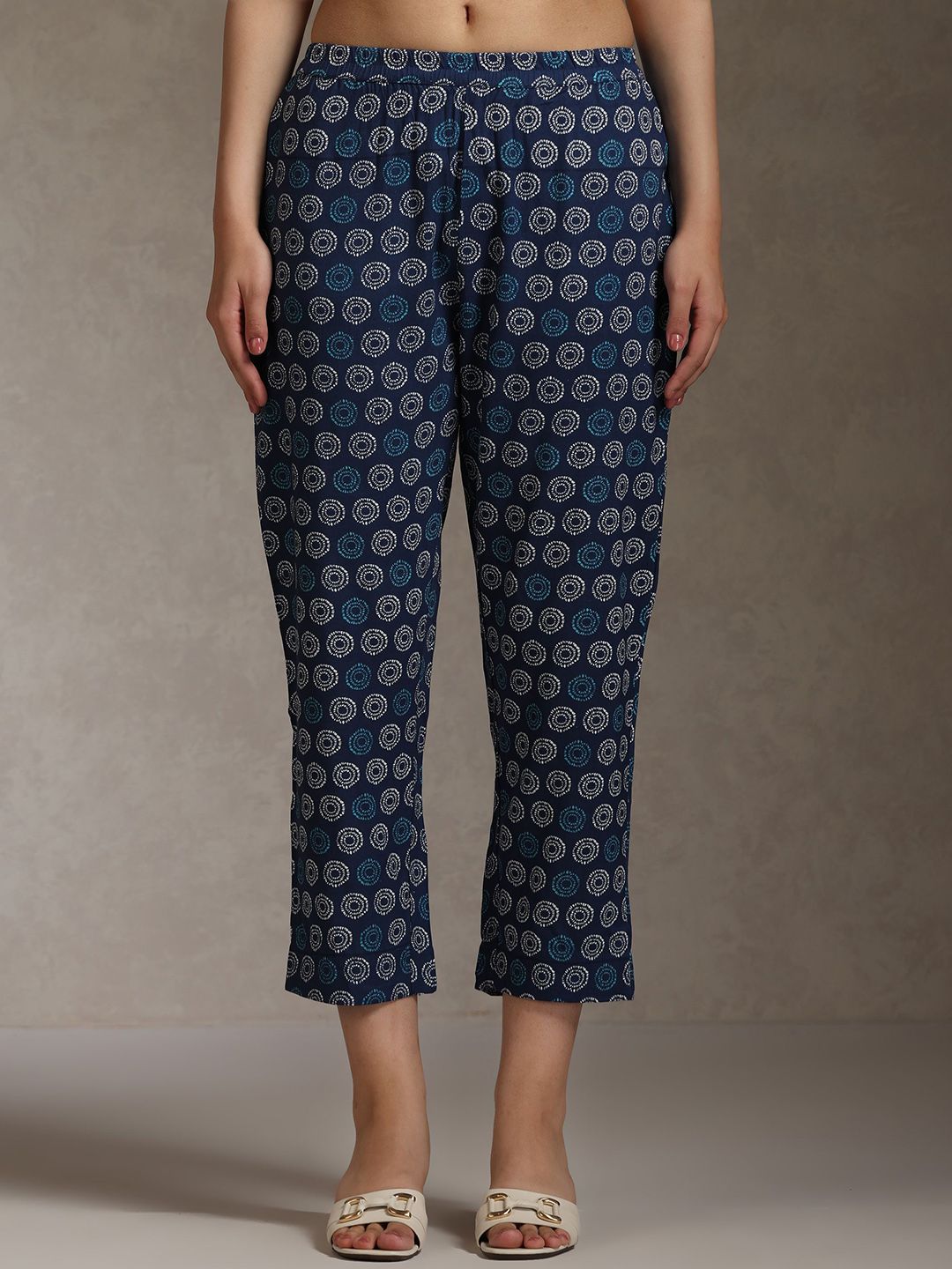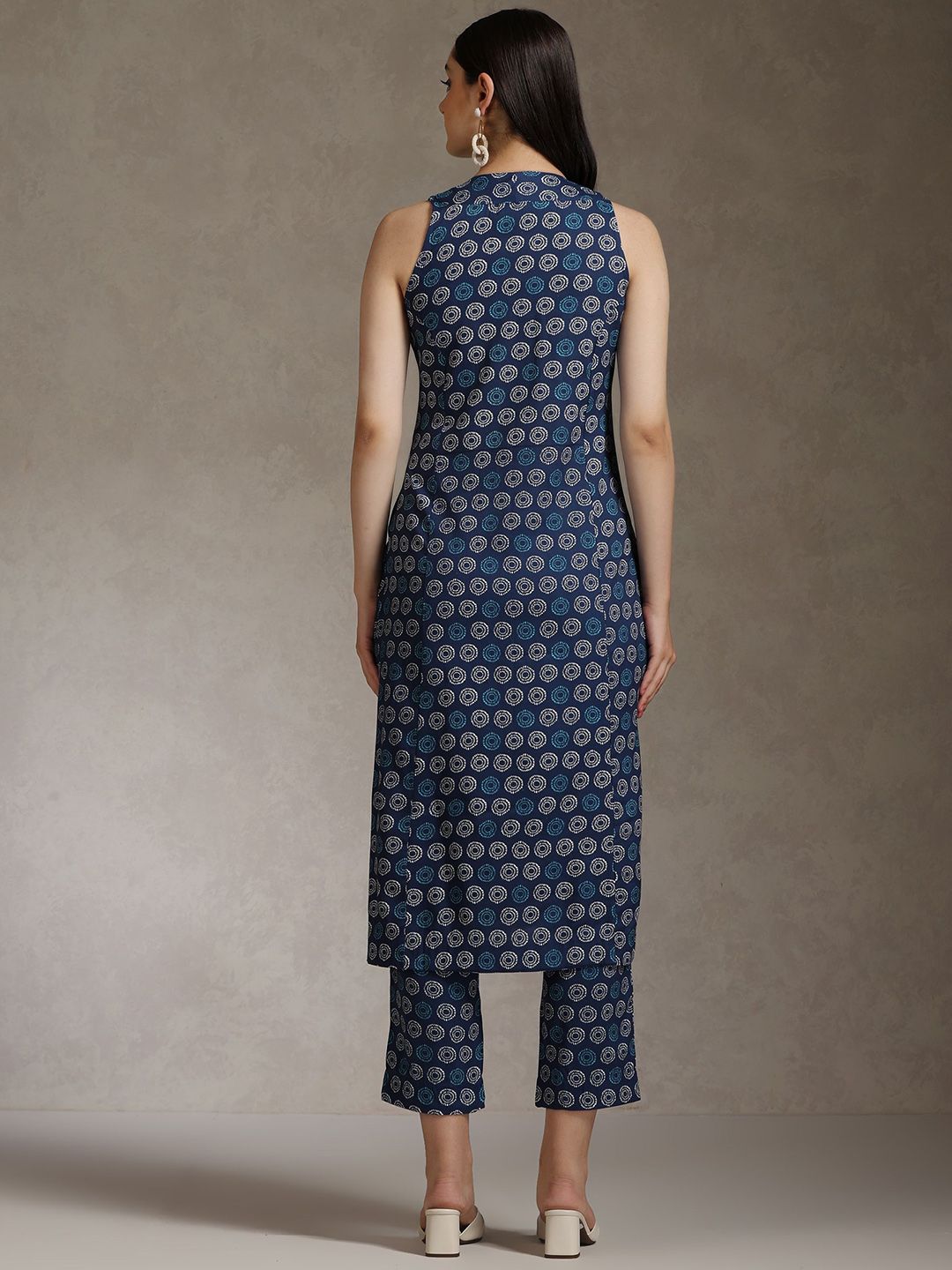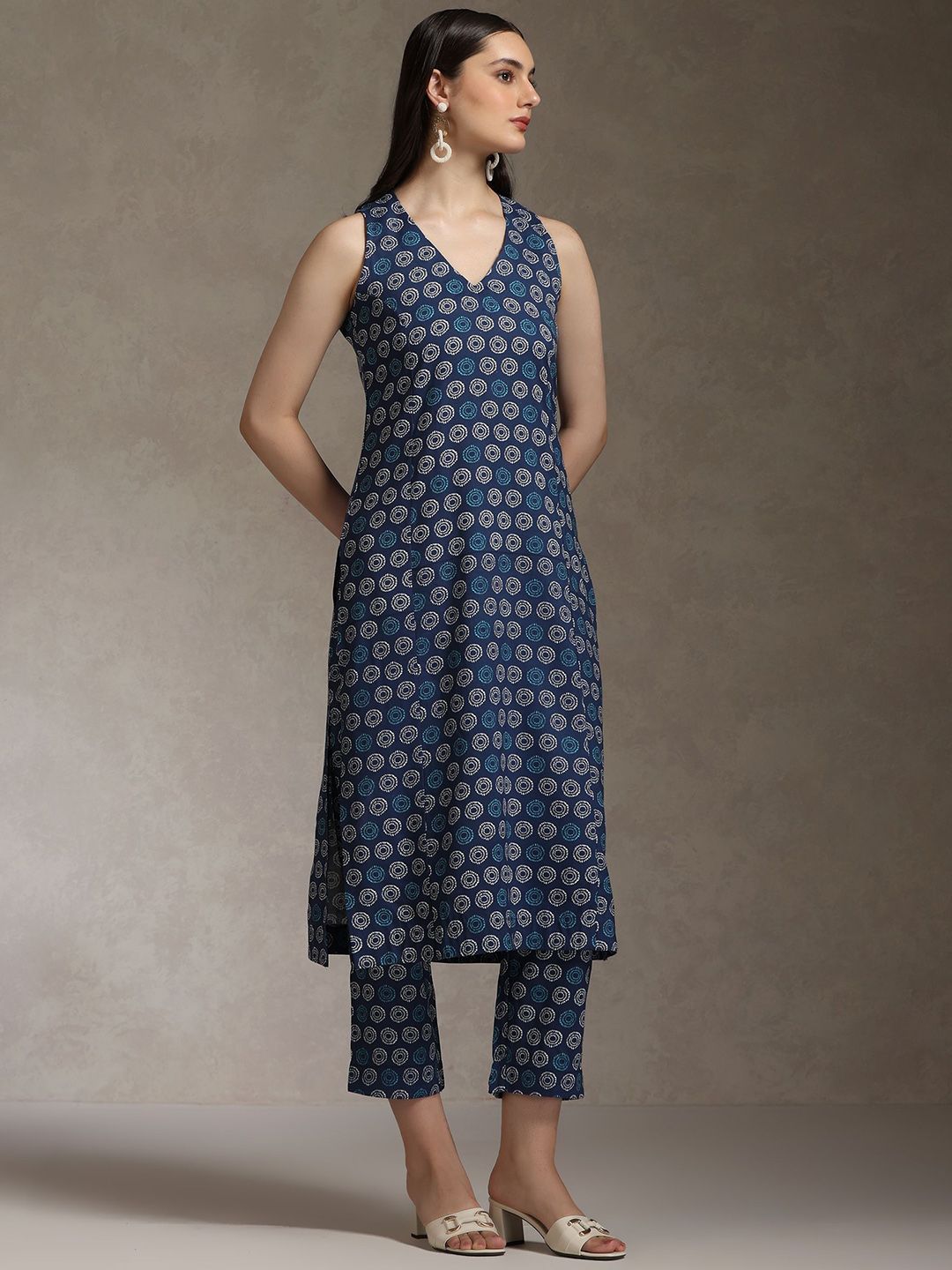 Khushal K Women Ethnic Motifs Printed V-Neck Pure Cotton Kurta with Trousers