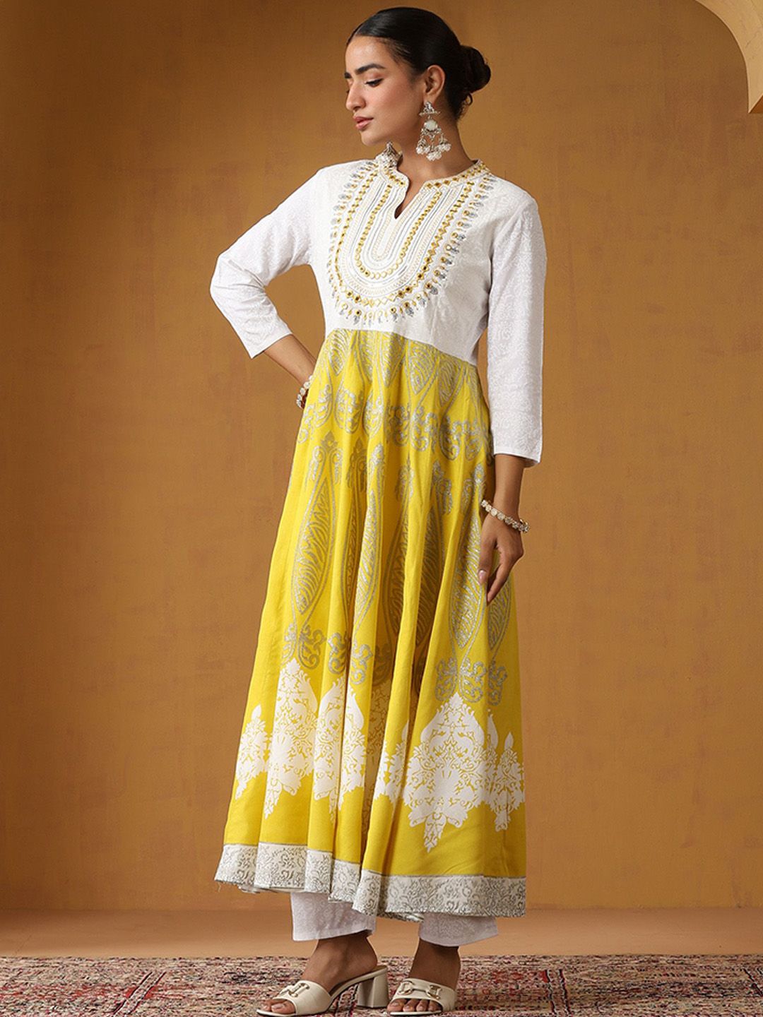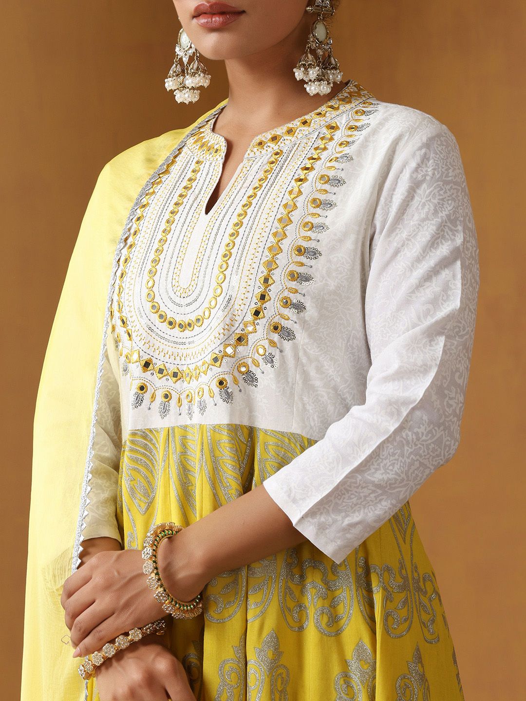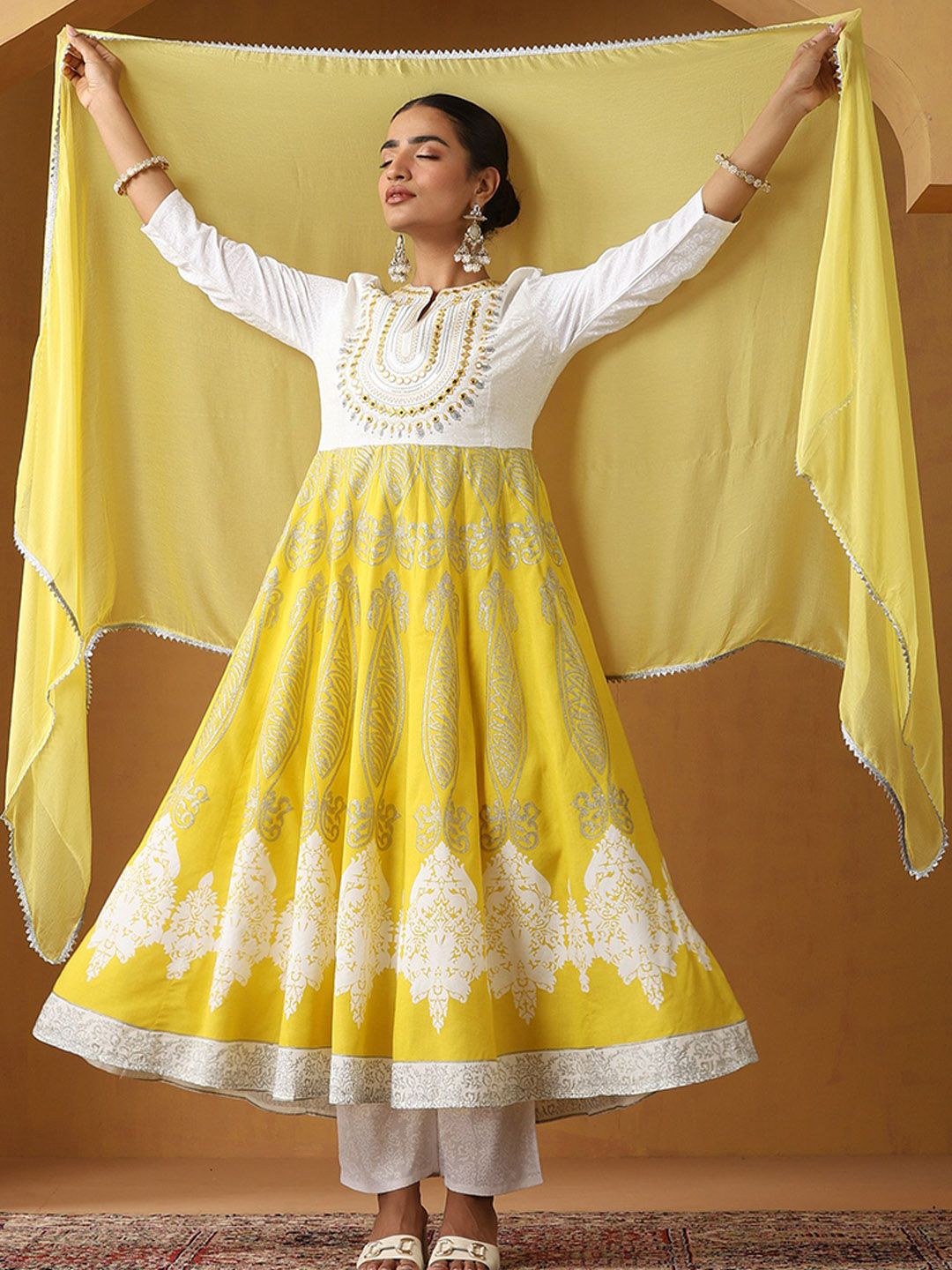 Khushal K Women Floral Printed Anarkali Kurta with Palazzos & Dupatta