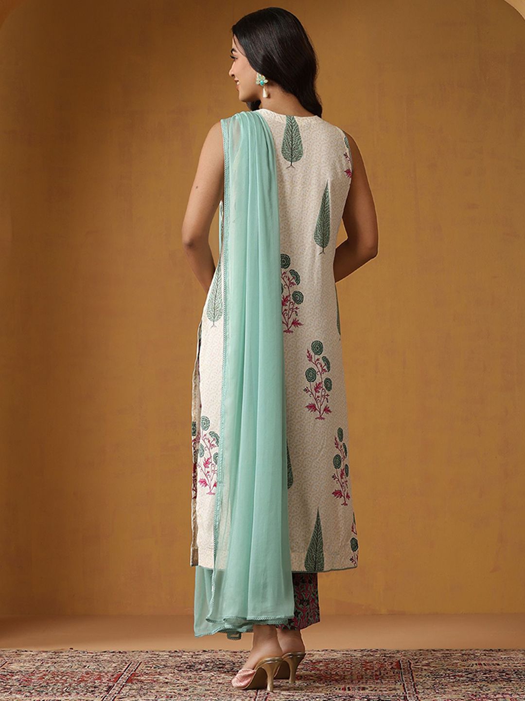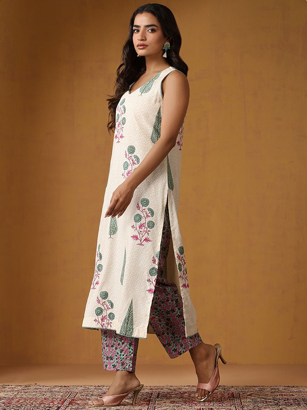 Khushal K Women Floral Printed Sleeveless Pure Cotton Kurta Set With Dupatta