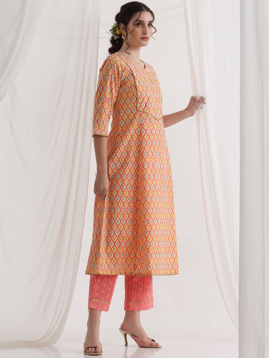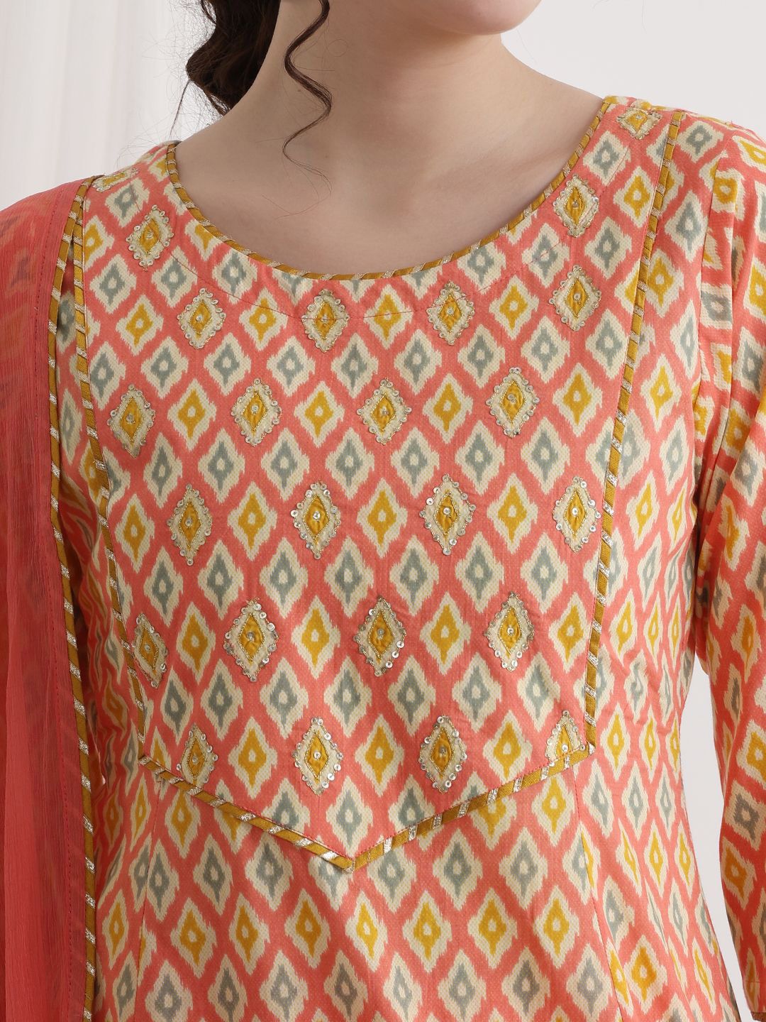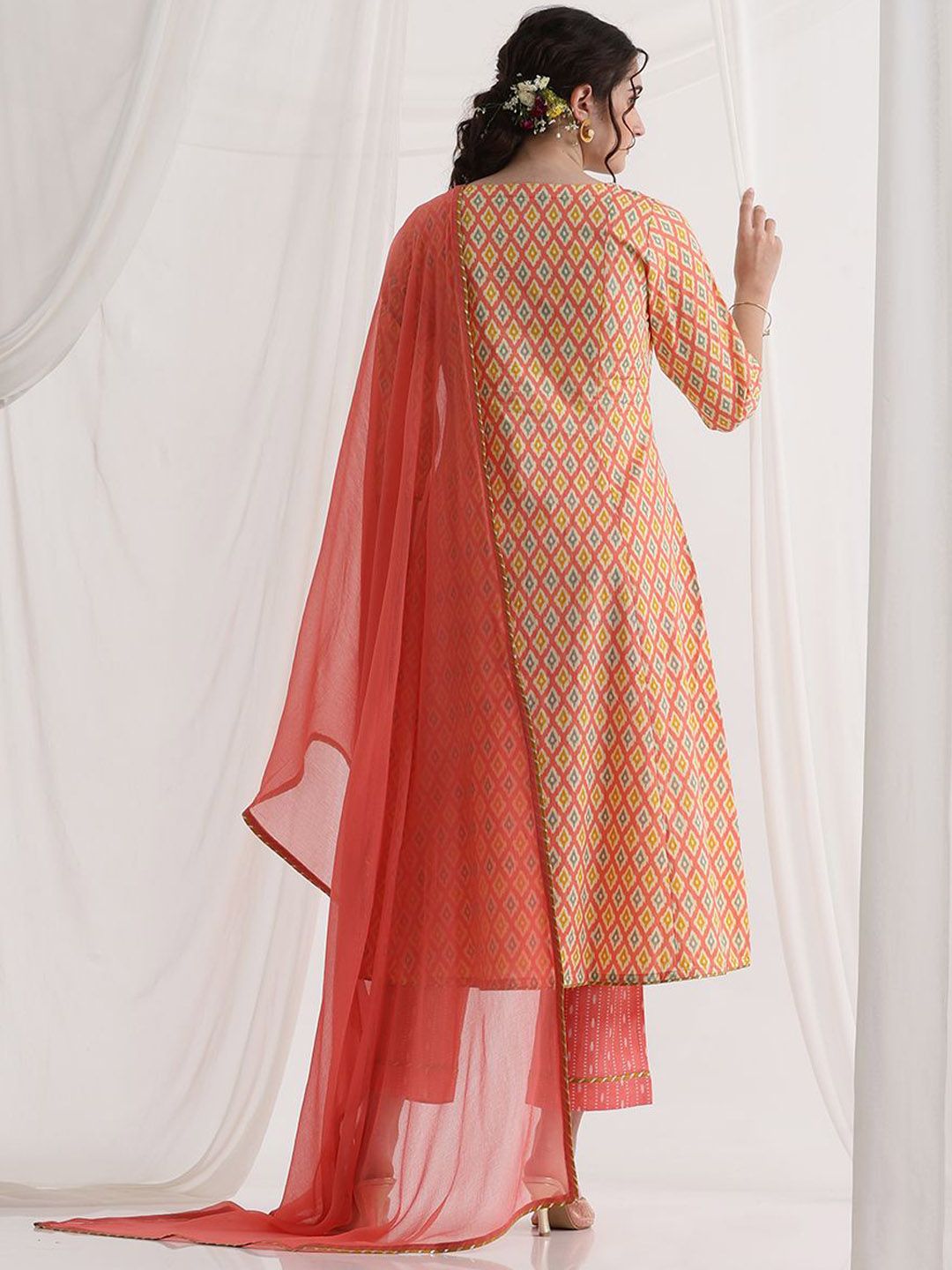 Khushal K Women Geometric Printed Pure Cotton A-Line Kurta with Palazzos & Dupatta