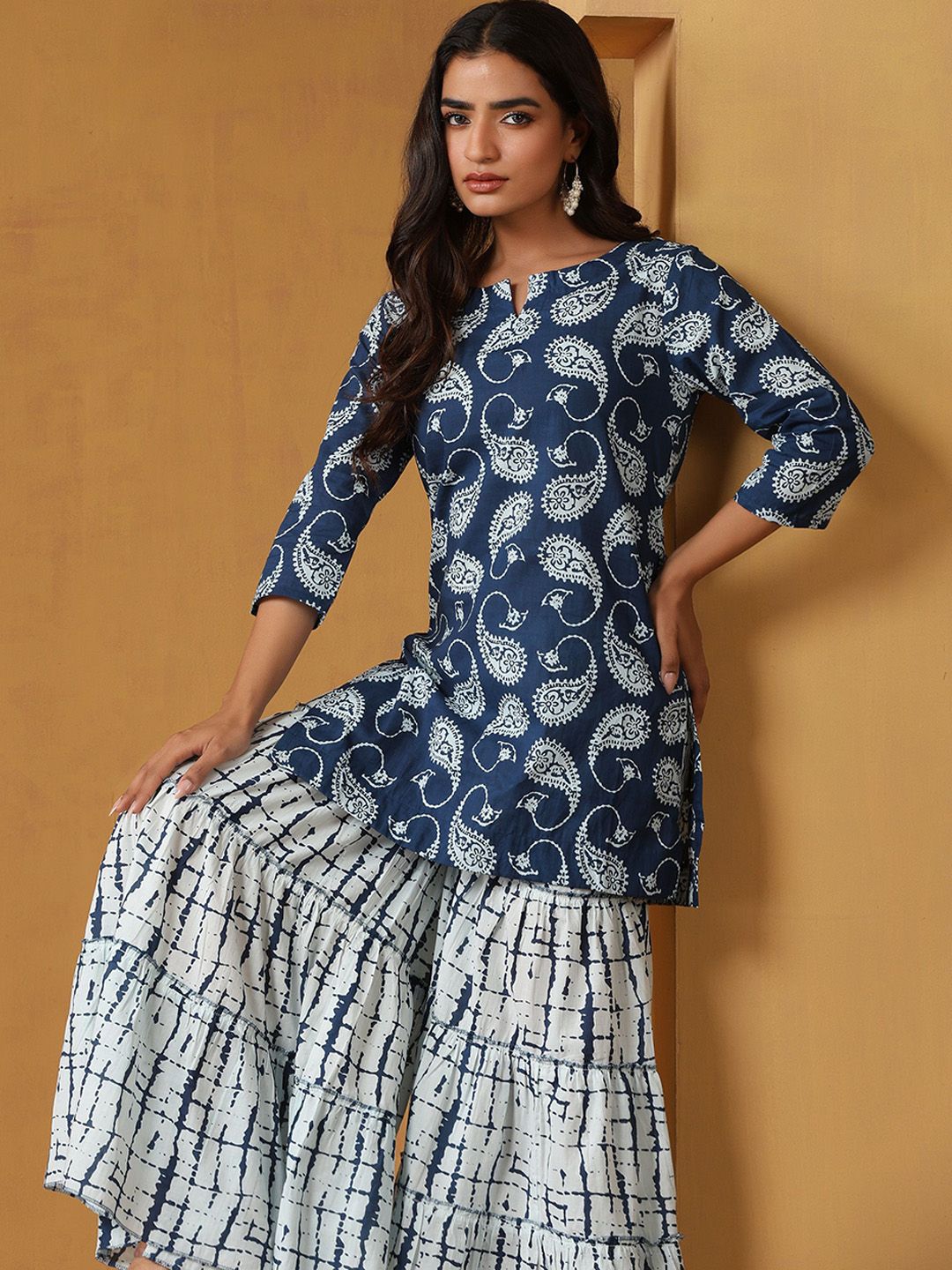 Khushal K Women Paisley Printed Cotton Kurta with Sharara