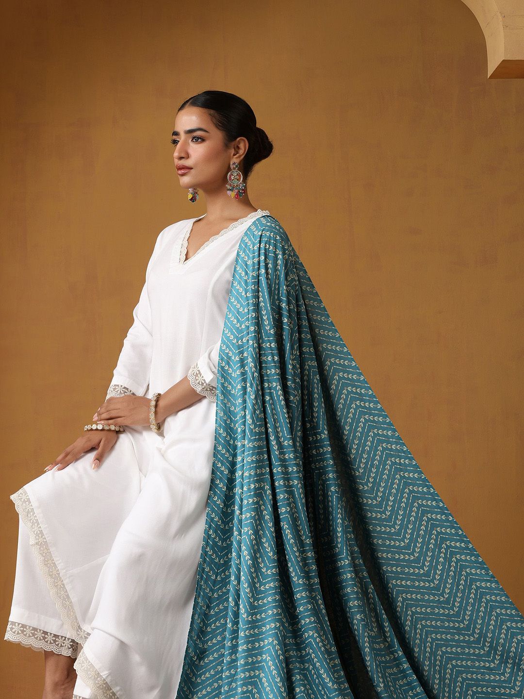 Khushal K Women Solid A-Line Kurta with Palazzos & Dupatta
