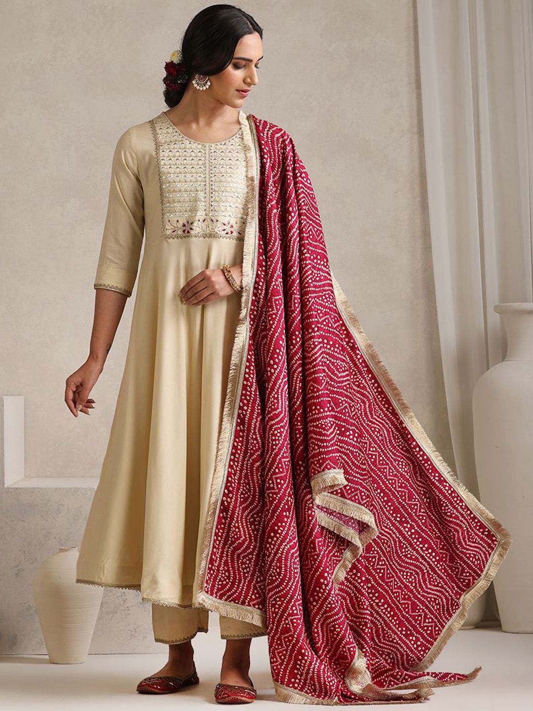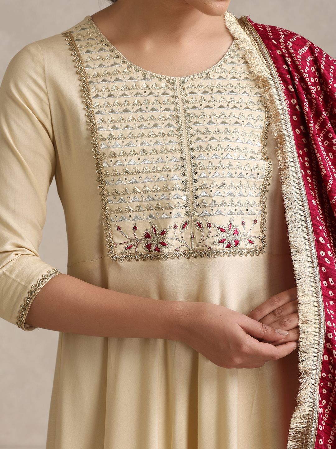 Buy this stylish Khushal K Yoke Or Border Embroidered Regular Anarkali Kurta With Palazzos & Dupatta at Marincart Nepal. This product offers great quality and value. Perfect for those looking for the latest trends in fashion. Get yours now at unbeatable prices.