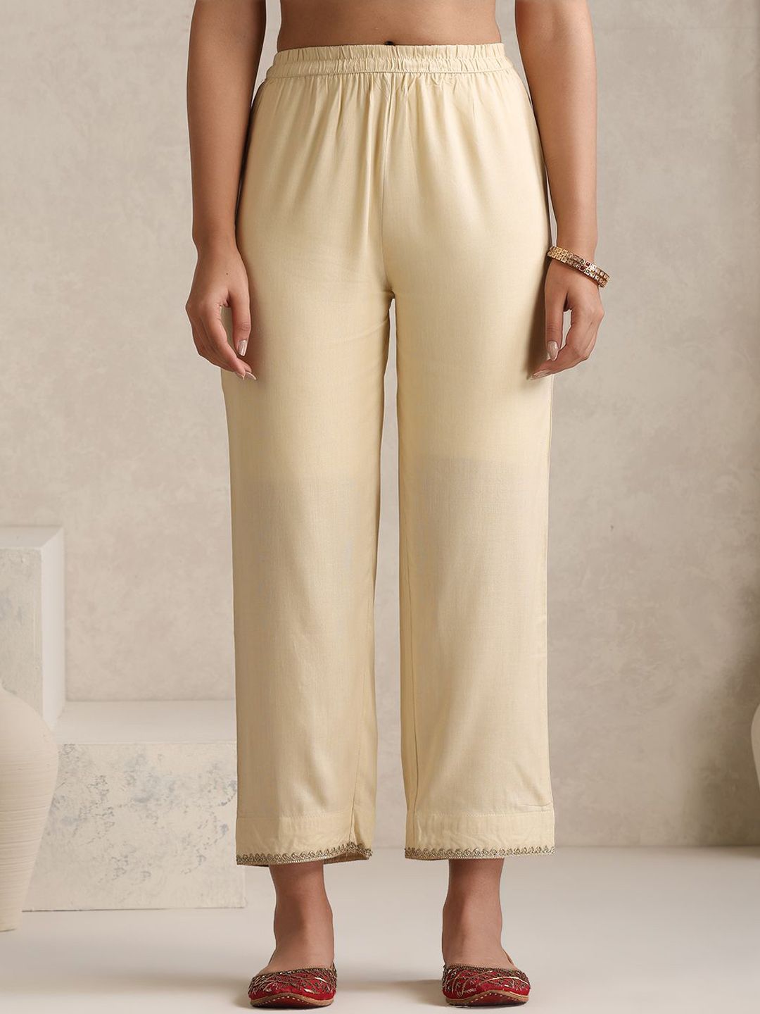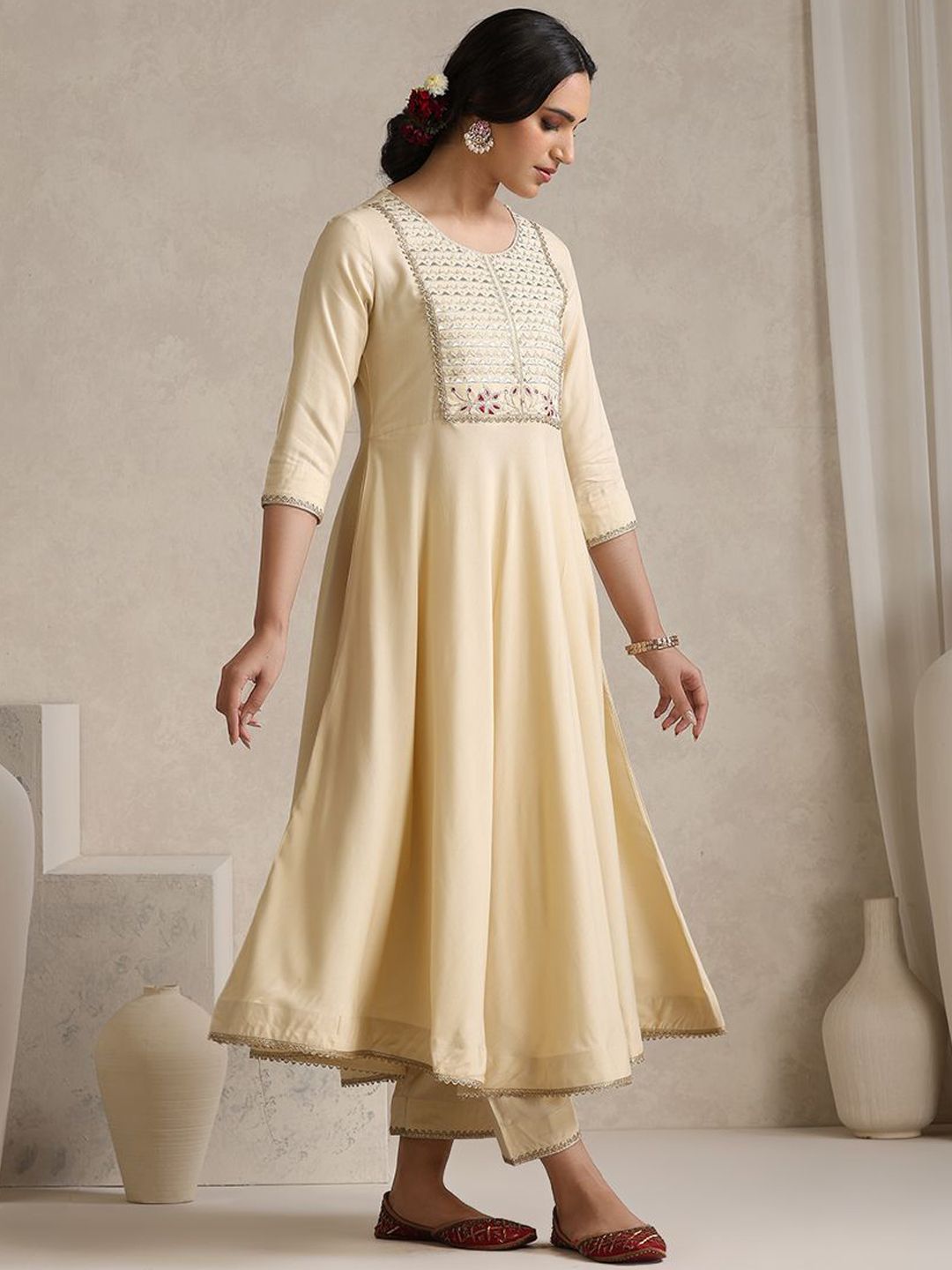 Khushal K Yoke Or Border Embroidered Regular Anarkali Kurta With Palazzos & Dupatta