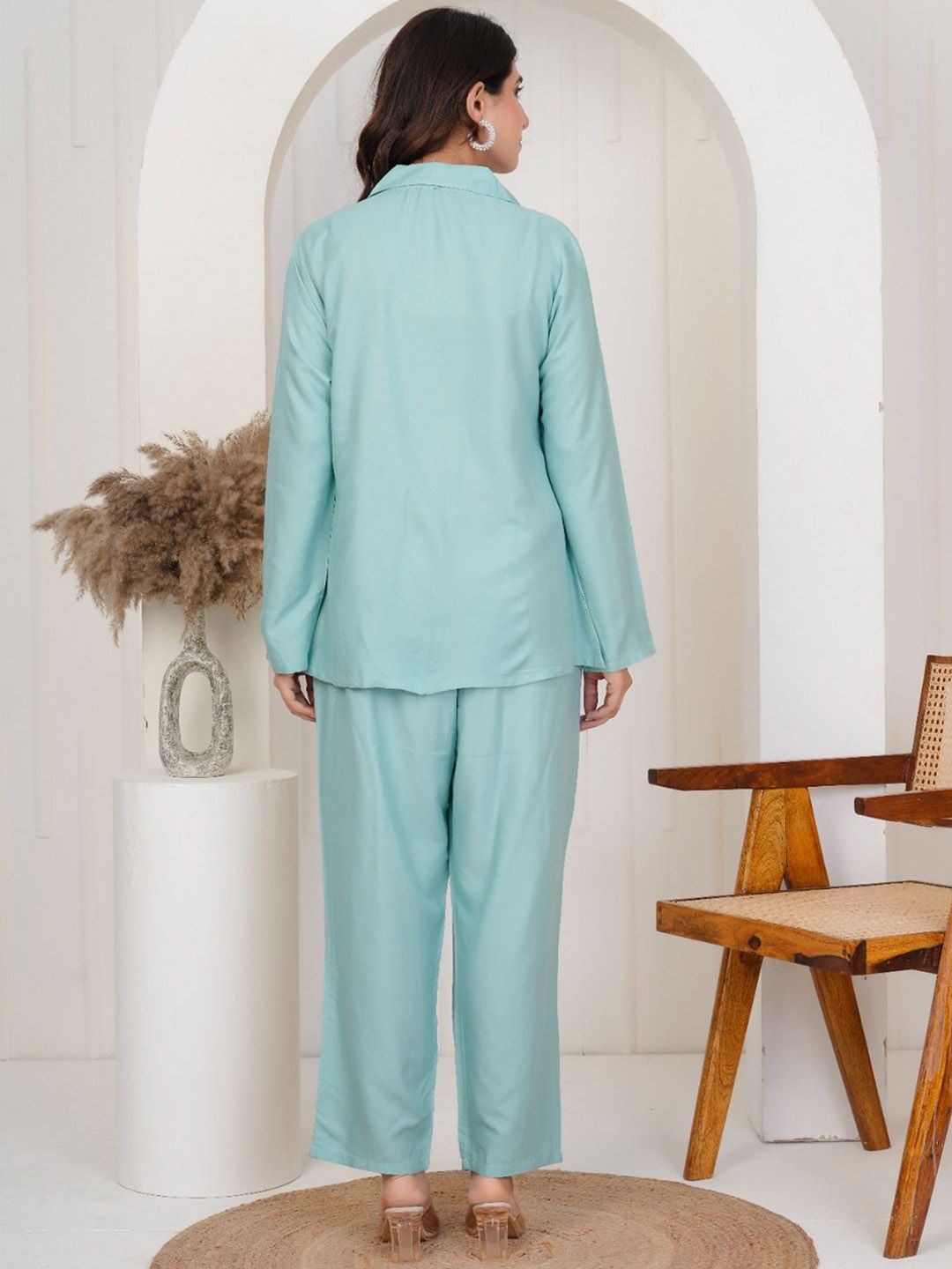 KIAARON Ethnic Motifs Embroidered Shirt Collar A-Line Top With Palazzos