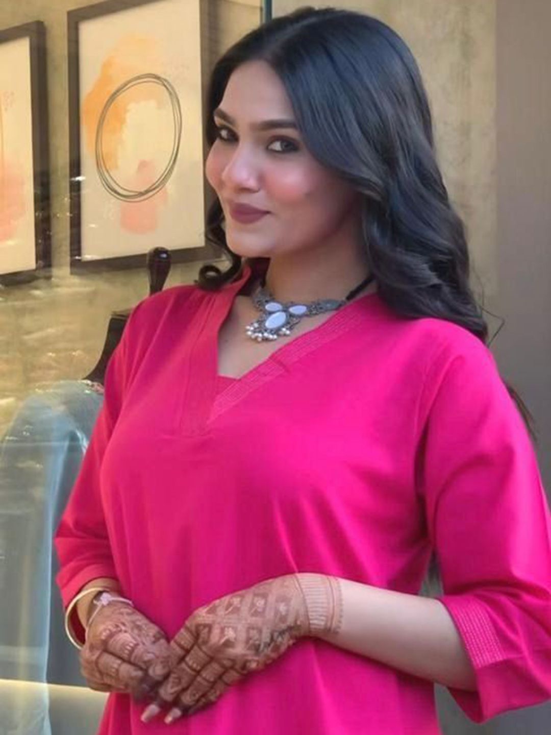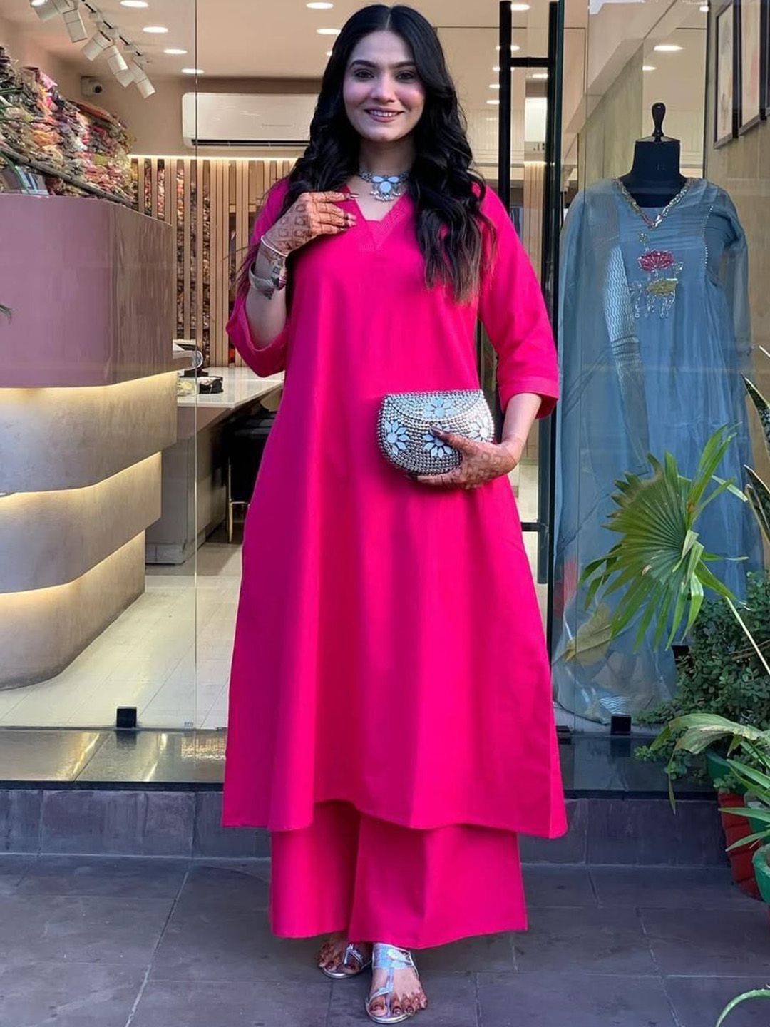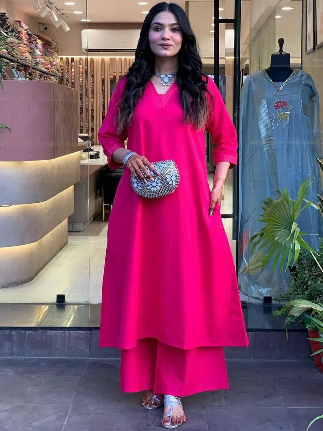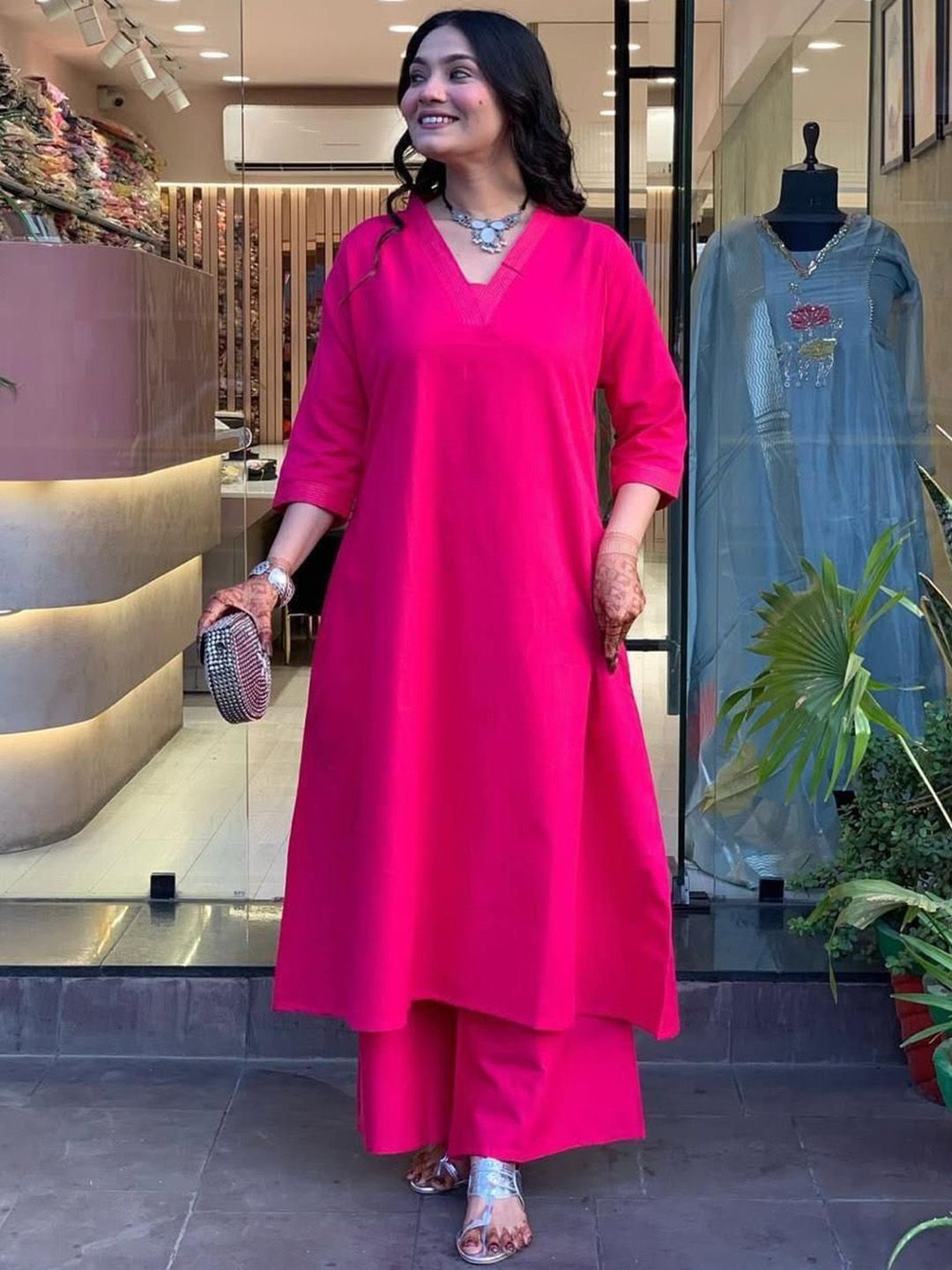 KIAARON Women Regular Pure Cotton V-Neck Kurta with Palazzo
