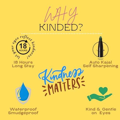 WATERPROOF & LONG LASTING FORMULA - KINDED Kind Eyes Kajal has a gentle and long lasting formula, which makes it easy to apply and lasts all day long. It is smudge proof, transfer proof and water proof. 3 IN 1 USAGE - Our Kohl Kajal comes with a 3-in-1 usage. It can be used as a Kajal, Eyeliner and Smokey Eye Shadow in one. Its soft and blendable formula is ideal to apply both on the inner and outer rims of the eye. TWIST UP AUTO KAJAL - The twist-up rotating format of the Kajal ensures that the Kajal tip is self-sharpened, making it simple and effortless to apply. The Kajal glides smoothly on the skin. GOODNESS OF ALMOND OIL & SHEA BUTTER - Infused with Shea Butter and Almond Oil, the Kajal is gentle and kind to your skin. It is a Cruelty Free, Sulphate Free and Paraben Free Vegan product. SINGLE STROKE APPLICATION - Enriched with pure pigments, this Kajal allows for an intense result from the very first stroke. This Kajal gives a smooth application with a high colour pay-off in a single stroke.
