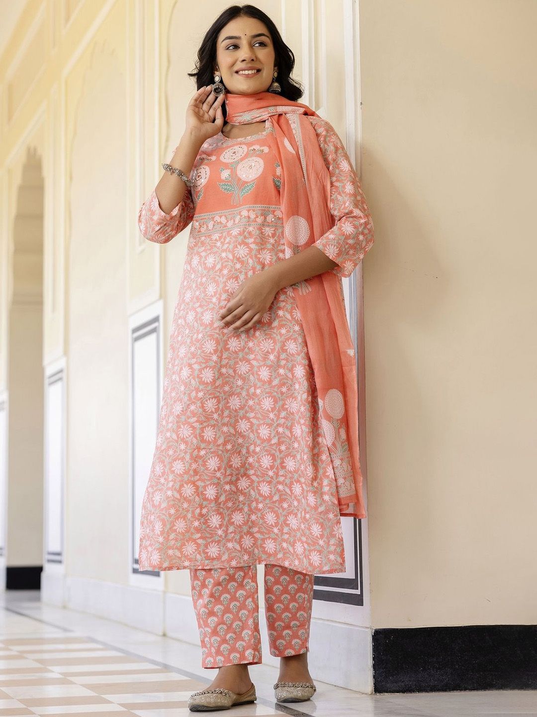 Buy this stylish Kohsh Women Floral Printed Sequinned Pure Cotton Kurta with Trousers & With Dupatta at Marincart Nepal. This product offers great quality and value. Perfect for those looking for the latest trends in fashion. Get yours now at unbeatable prices.