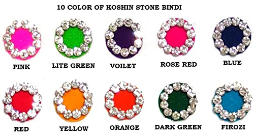 KOSHIN Multi Color White Stone Round Shape Size (Per Bindi Height 1 cm x Width 1 cm) Forehead Fancy Stone Bindi For Girls Women Ladies (Multi color White Stone Bindi)