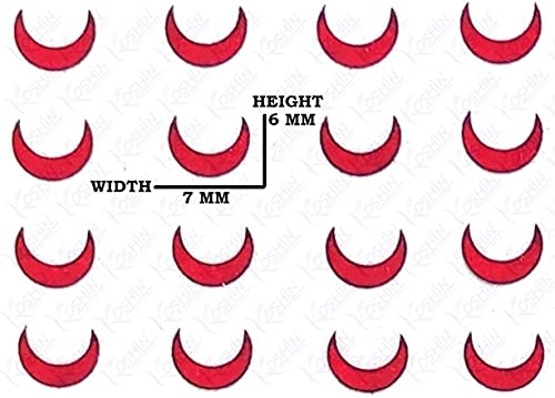 ? Feature:- Casual Plain Traditional | Red Velvet Bindi | Longlasting | Reusable | Lightweight Fabric | Soft & Comfortable ? Shape & Color:- Red Half Moon Medium Shape ? SIZE:- Per Bindi Height 6 mm x Width 7 mm ? Packet Containts:- 50 Half Moon Bindi in One Card , Pack of 2 ? Occasion: Bridal, Partywear, Wedding, Casual, Anniversary, Sagan, Ceremony,, Any Occasion ? HOW TO USE:- For better stability, Clean the wet and oily areas of your forehead before applying bindi. keep bindi on the same card and at the same place after use. Doing this can make your bindi long lasting and reusable.