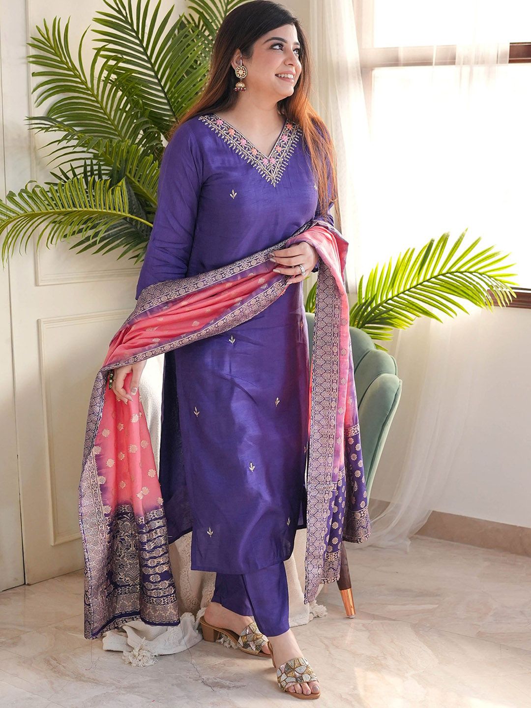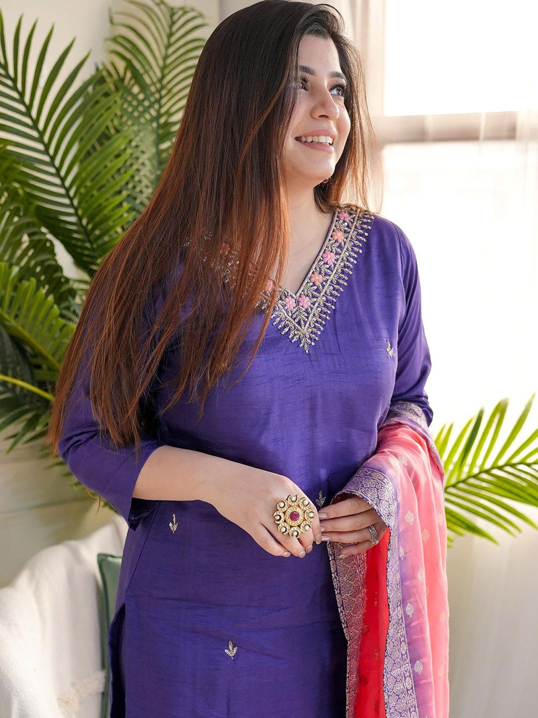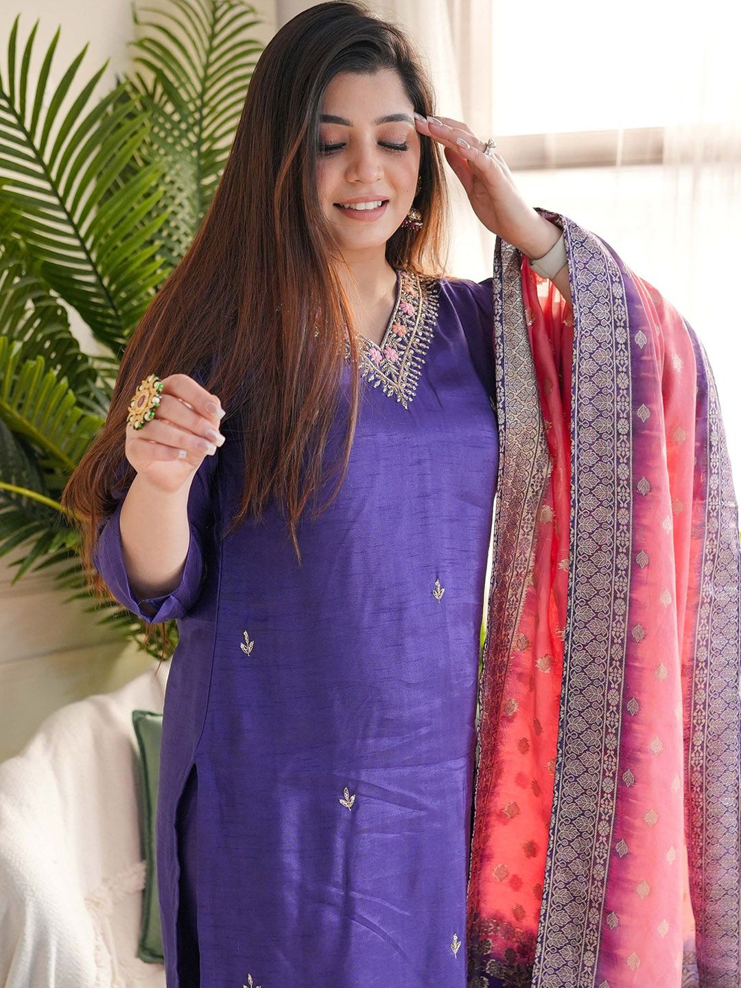 Buy this stylish KOTRONS Floral Embroidered Sequinned Straight Chanderi Silk Kurta With Trousers & Dupatta at Marincart Nepal. This product offers great quality and value. Perfect for those looking for the latest trends in fashion. Get yours now at unbeatable prices.