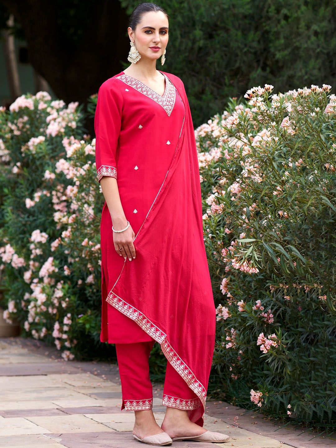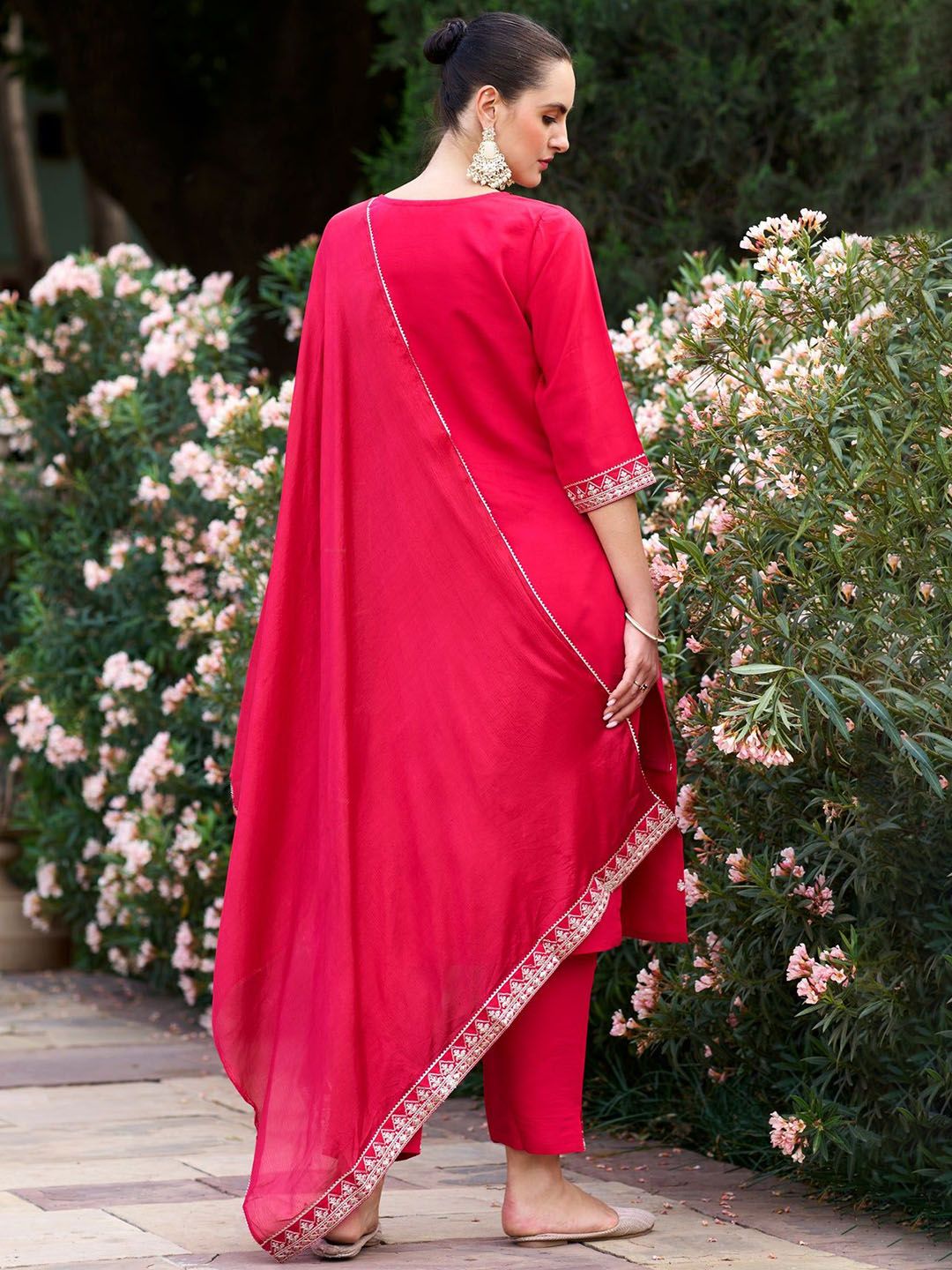 KOTRONS Women Ethnic Motifs Embroidered Kurta with Trousers & Dupatta