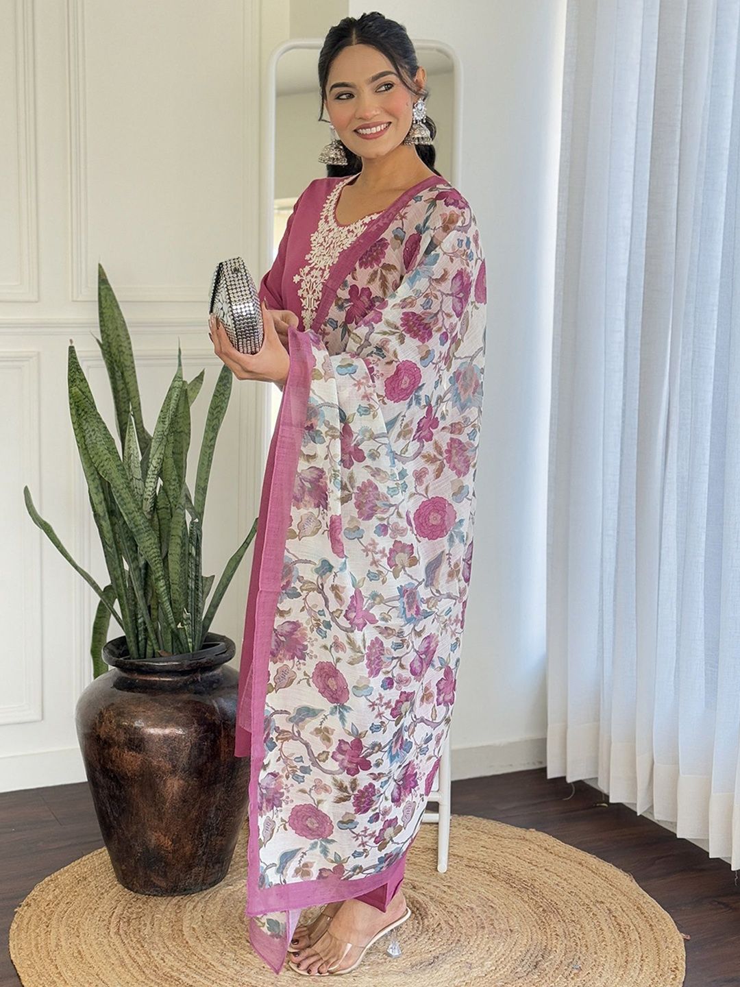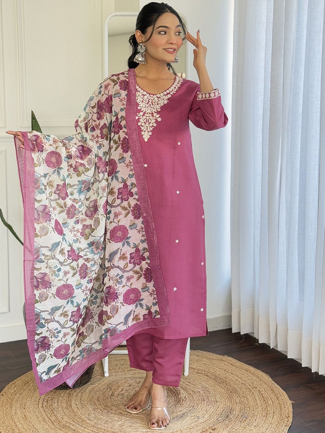 KOTRONS Women Ethnic Motifs Embroidered Regular Straight Kurta Sets