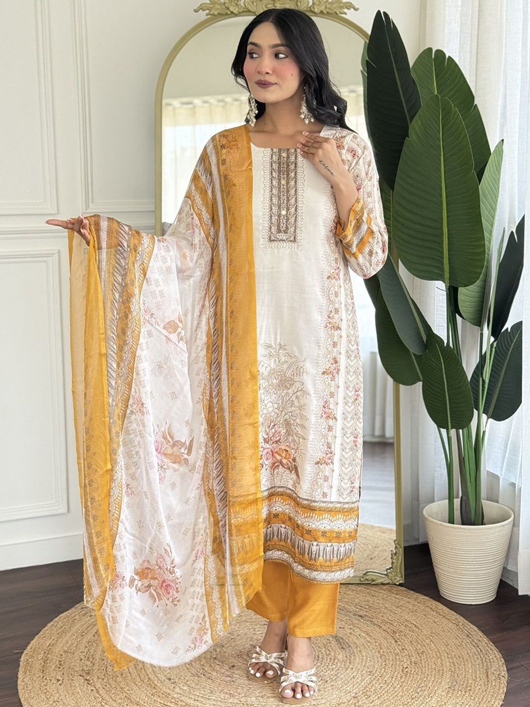 KOTRONS Women Floral Embroidered Kurta with Trousers & Dupatta