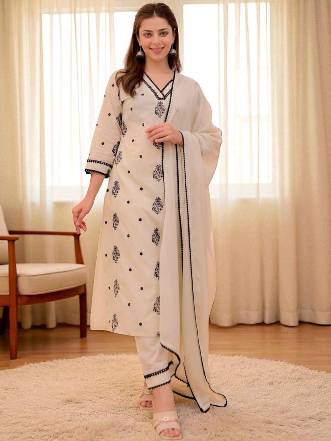 KOTRONS Women Floral Embroidered Regular Kurta with Trousers & Dupatta