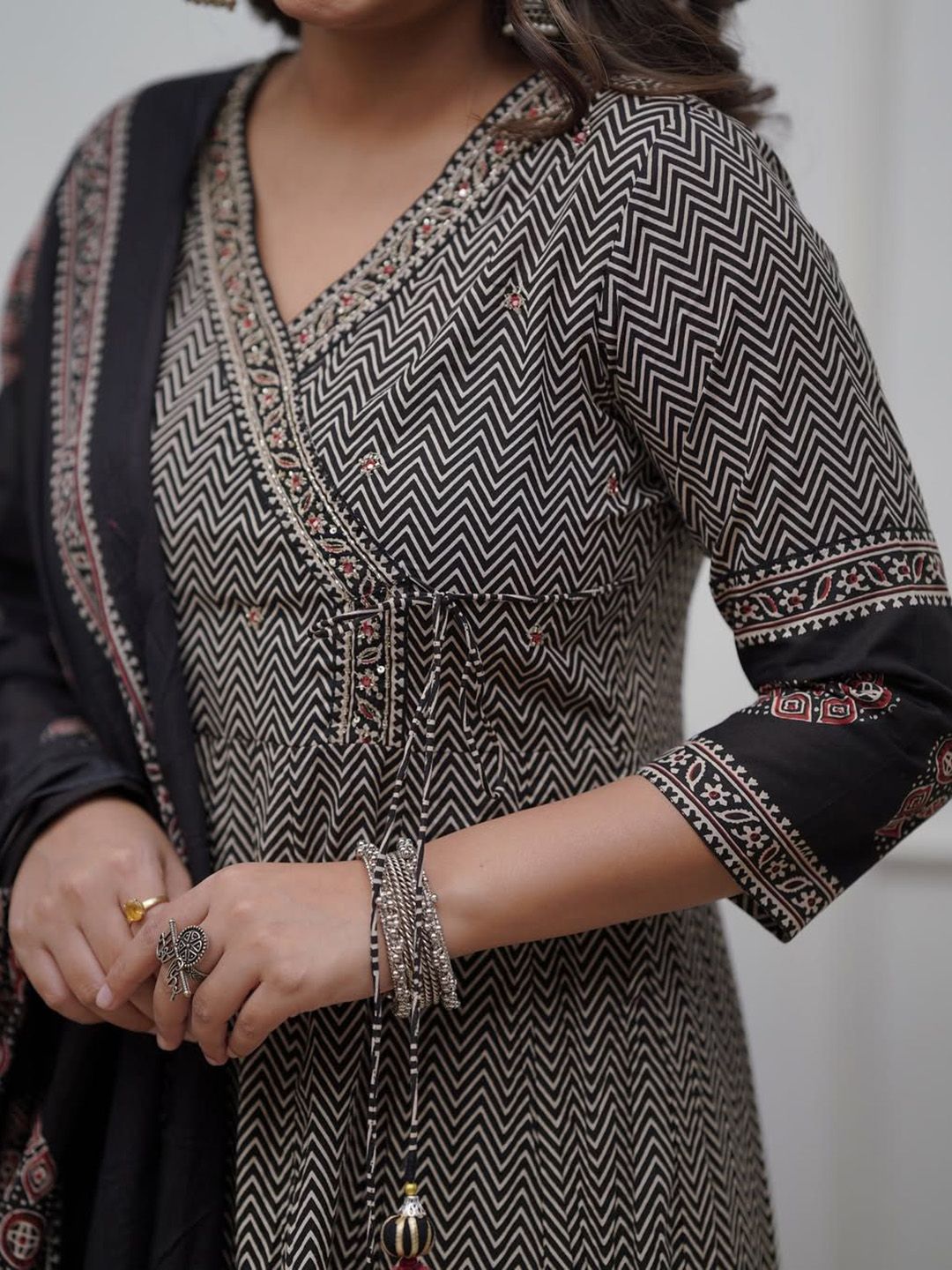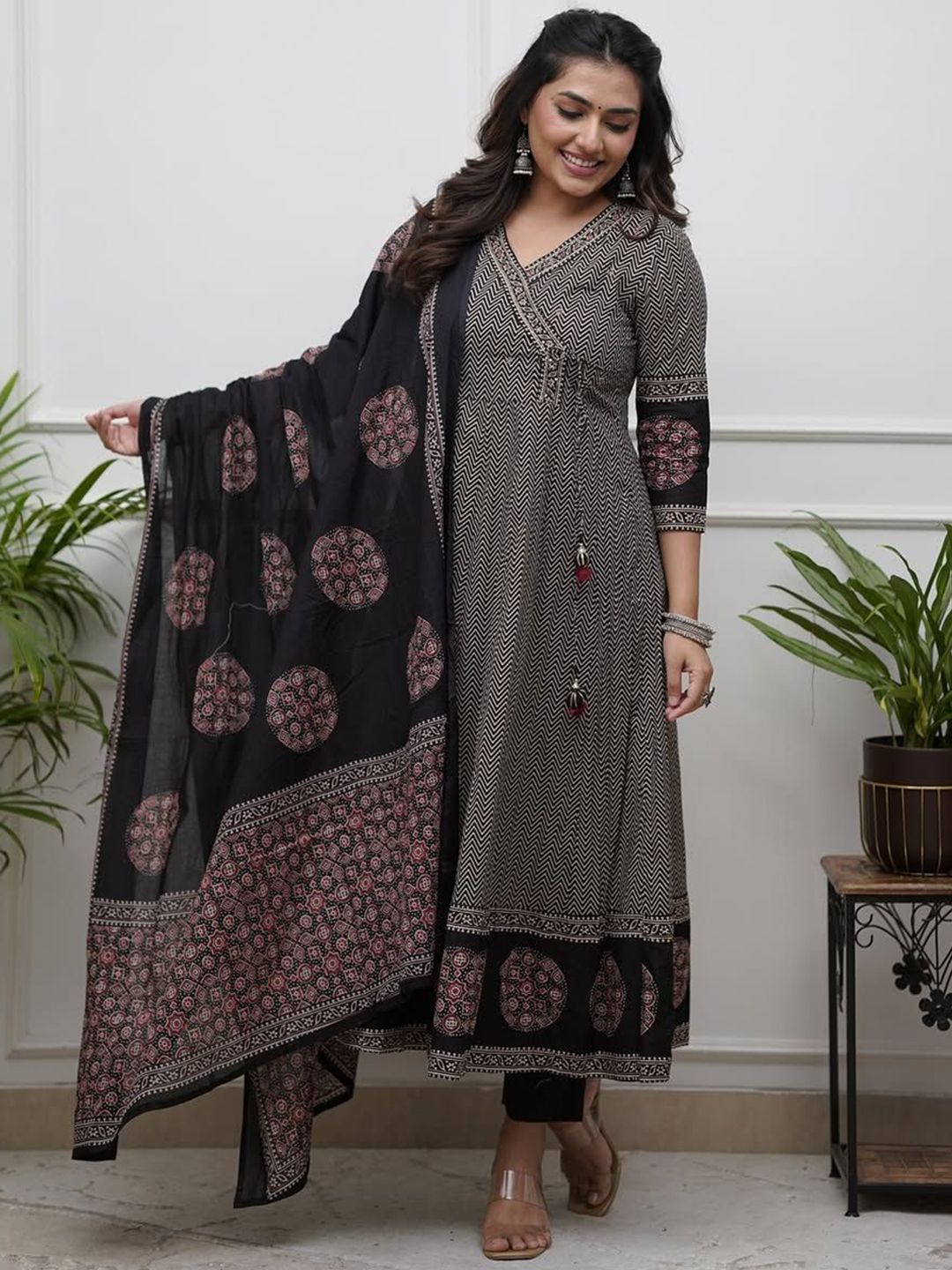 KOTRONS Women Solid Embroidered Regular Kurta Trousers With Dupatta