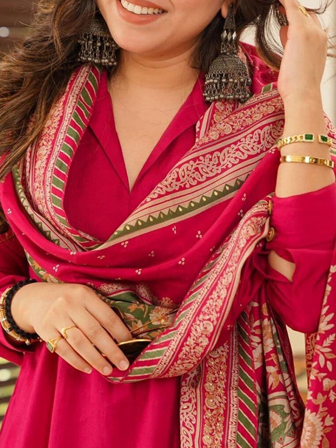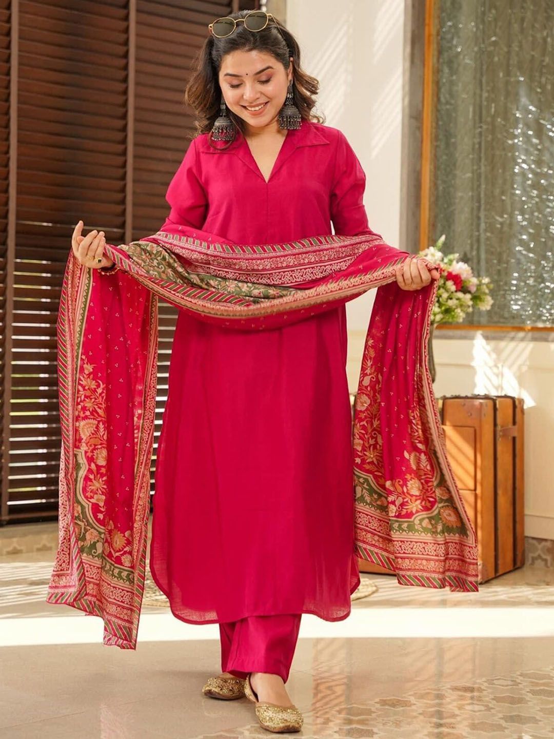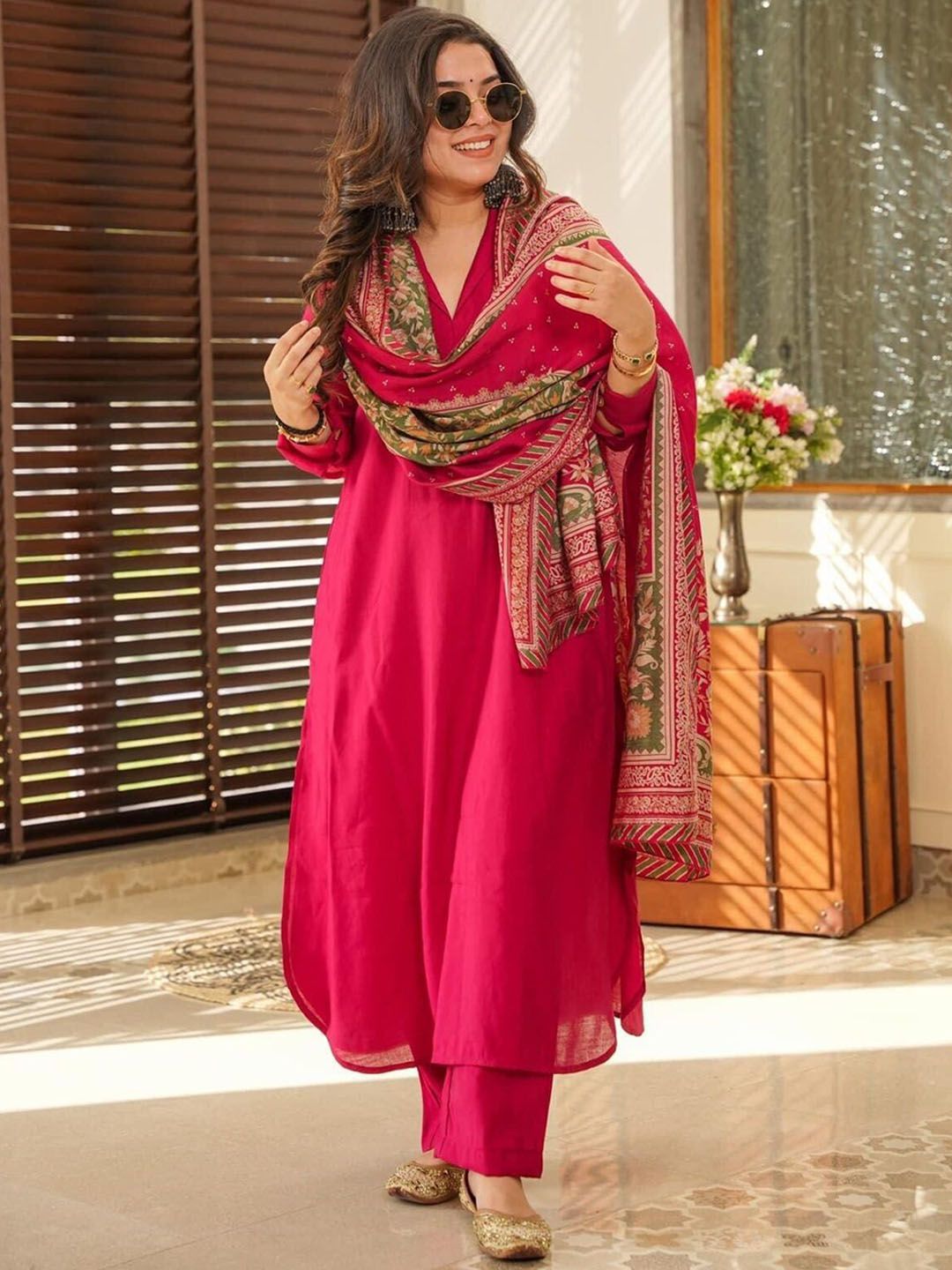 KOTRONS Women Solid Linen Kurta with Trousers & Dupatta