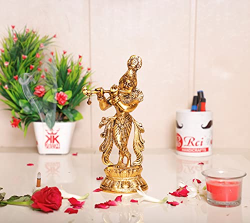 Krishna Flute || product dimensions- 10 x 6 x 22 cm(L:W:H)||Weight-380 GR|| Material - Metal(Aluminium)|| Color - Gold This beautiful Krishna statue created by craftsmen in India, the lovely statue brings goodness and benevolence to your home and your world Gorgeous Hand work and perfect showpiece of Indian Handicrafts. Ideal For Gift & Home Decor We are specialized in Corporate Gifting, Product Customization and Personalization. We can craft your idea's in to real piece of art.Our Designing to Manufacturing process are does in own unit by specialized team Gorgeous Hand work and perfect showpiece of Indian Handicrafts. Ideal For Gift & Home Decor.Spiritual Lucky Gift, Fengshui Gift, Thanksgiving Gift, Anniversary Gift, Easter Gift, Birthday Gift, Wedding Gift,Christmas gift,diwali gift Don't Wash, Use Dry Cotton Cloth To Remove Dirt.