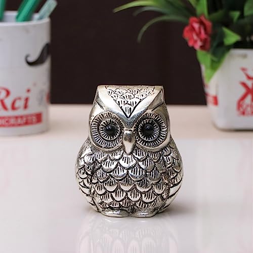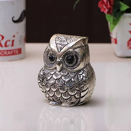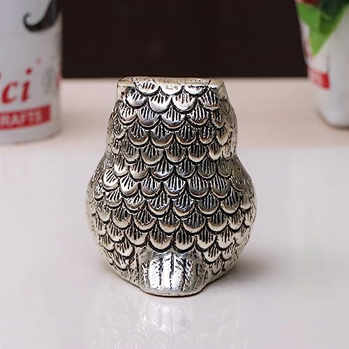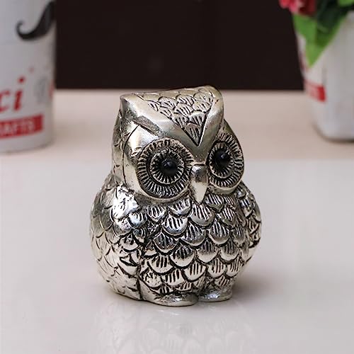 KridayKraft Vintage Metal Owl Showpiece and Paper Weight Metal Handicraft Idol for Home Decor and Office, 8 x 9 Cm, Silver
