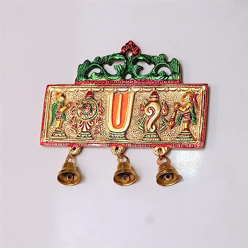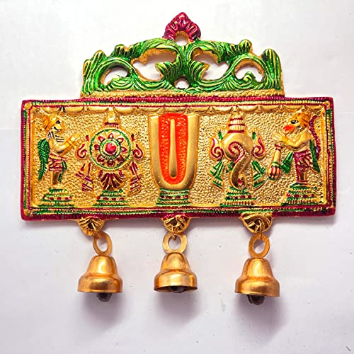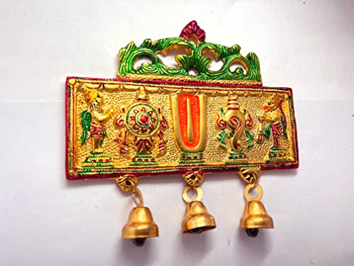 Shankh Chakra Namah Latkan || product dimensions- 20 x 3 x 16 cm (LXWXH)||Weight-250 GR|| Material - Metal(Aluminium)|| Color - Gold Shankh Chakra Namah Latkan Balaji also known as Venkateswara is a form of the Hindu god Vishnu.,Shankh(Conch) and Chakra(Divine Wheel of Power) are symbolic of Lord Vishnu/ Padmanabha Swamy's Power & Divinity. This figurine is believed to bring calm and peace where they are placed. They repel negative energy and attract positive vibes. Place it around your home, living room, yoga room or meditation room. It's great for office/ workplace too as its presence brings a lot of positivity,It is a perfect gift for Diwali house warming , Anniversary or festive occasions ,It can be a Memorable Return Gift. White Metal Gold Plated with antique finish work Wall Hangaings is an impressive piece of art that is made from the finest-grade raw materials and intricately designed by our teams of adroit designers and craftsmen using high-end technologies Don't Wash, Use Dry Cotton Cloth To Remove Dirt
