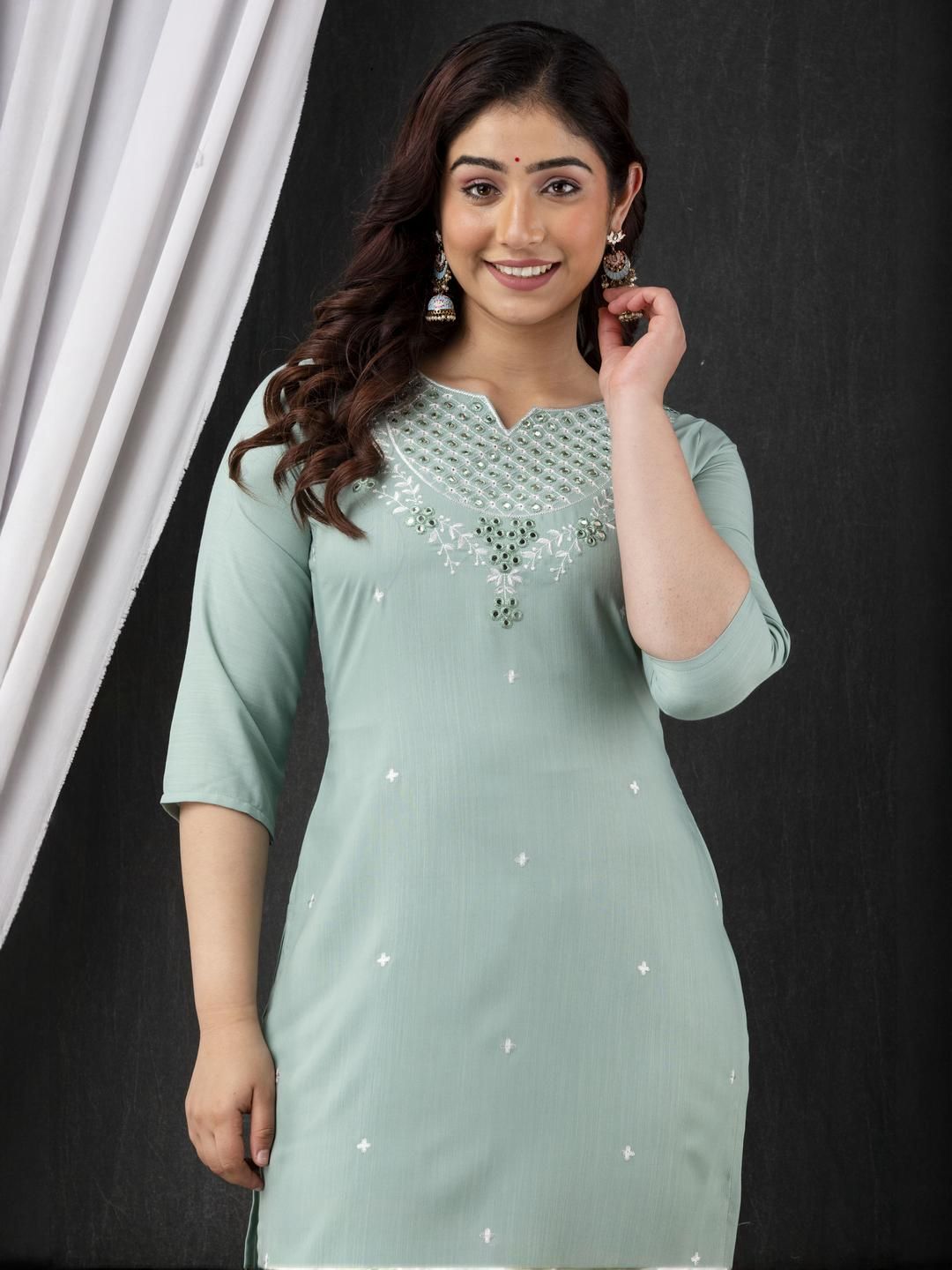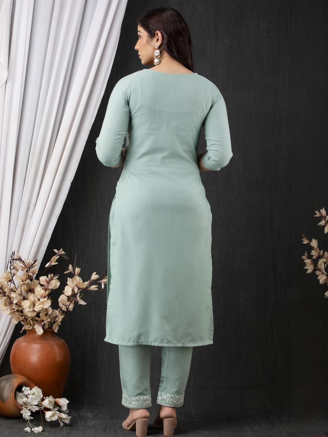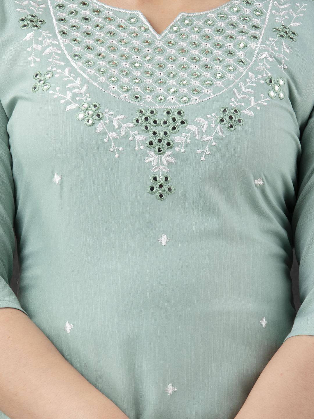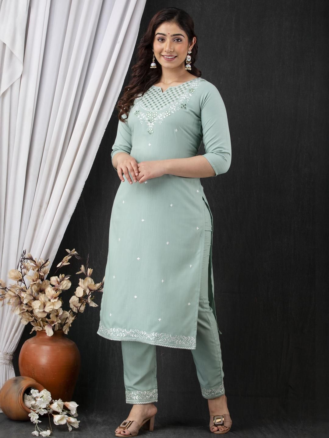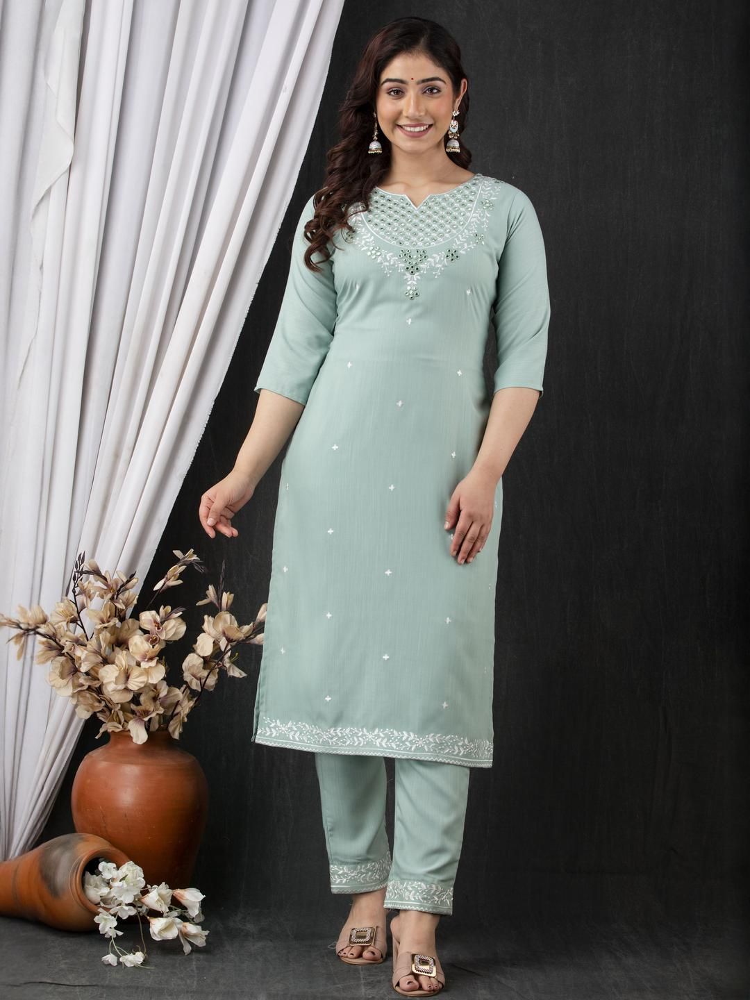 KRISKA Women Embroidered Viscose Rayon Kurta Set