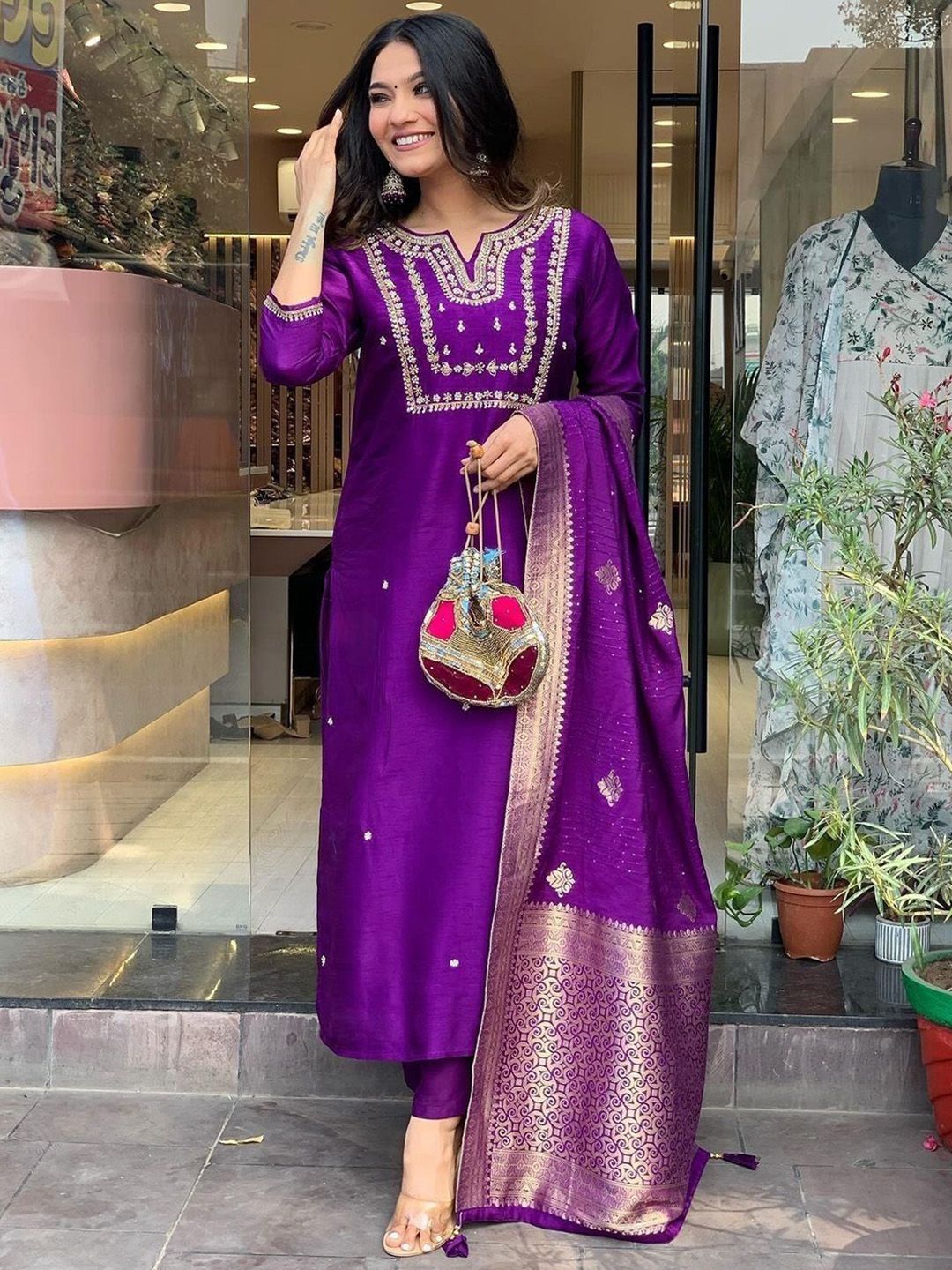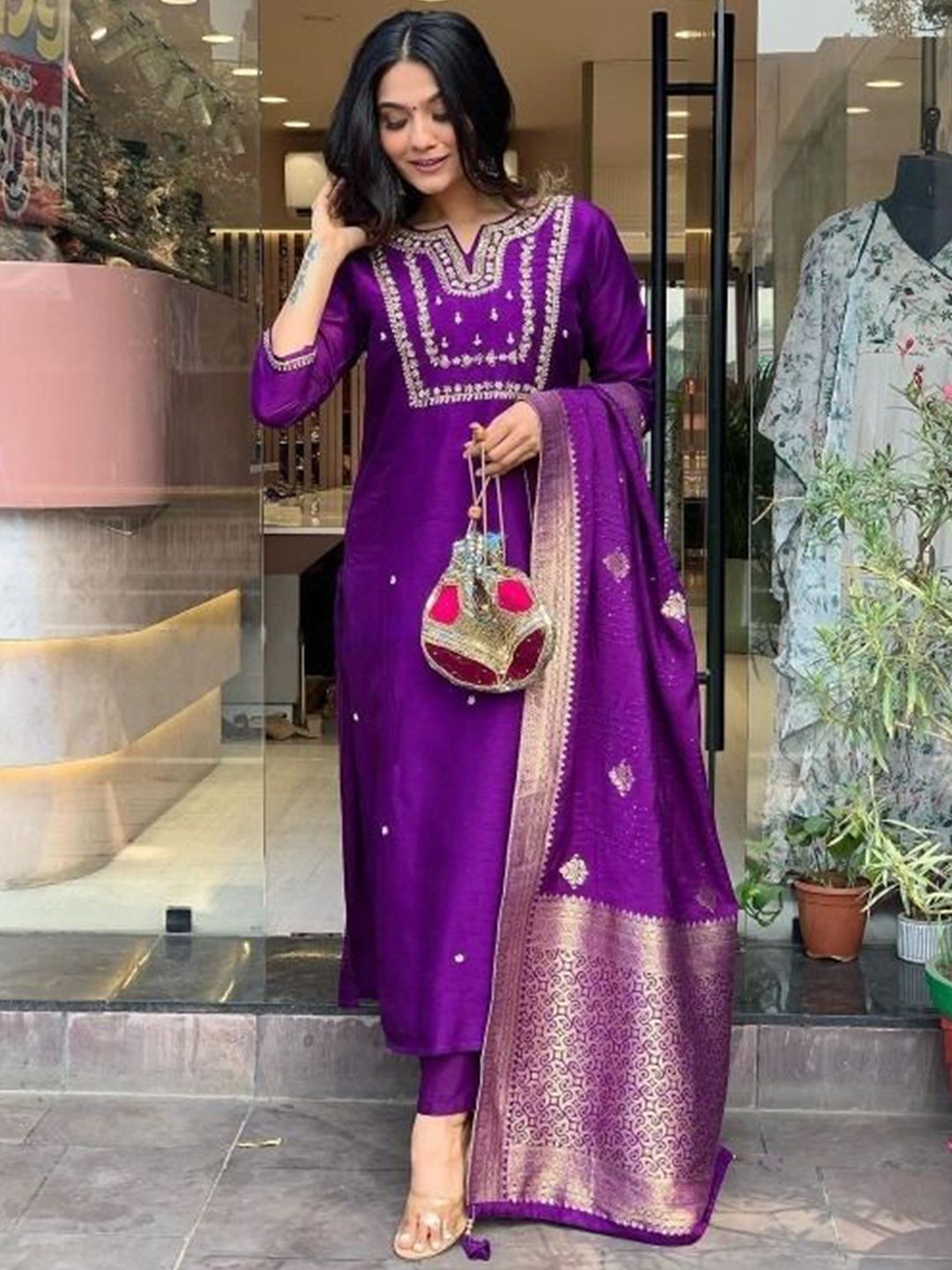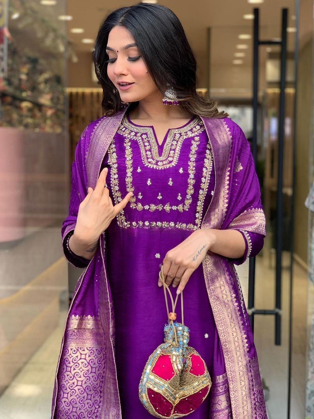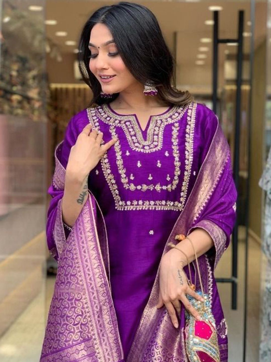 KRITVA FASHION Women Ethnic Motifs Embroidered Regular Kurta with Trousers & Zari Dupatta