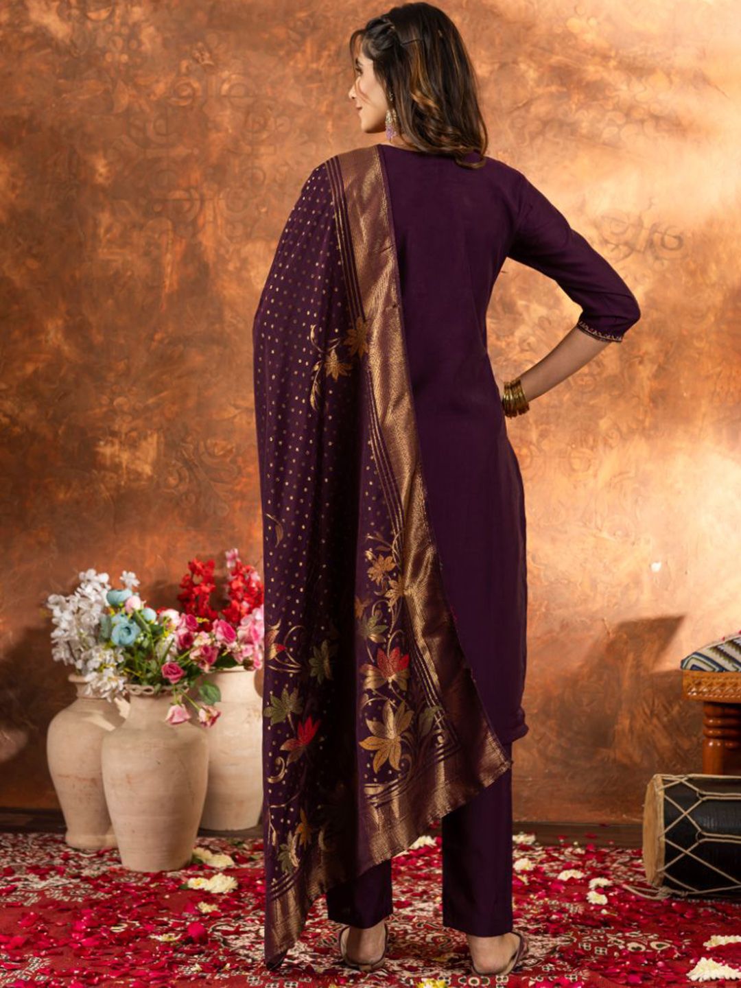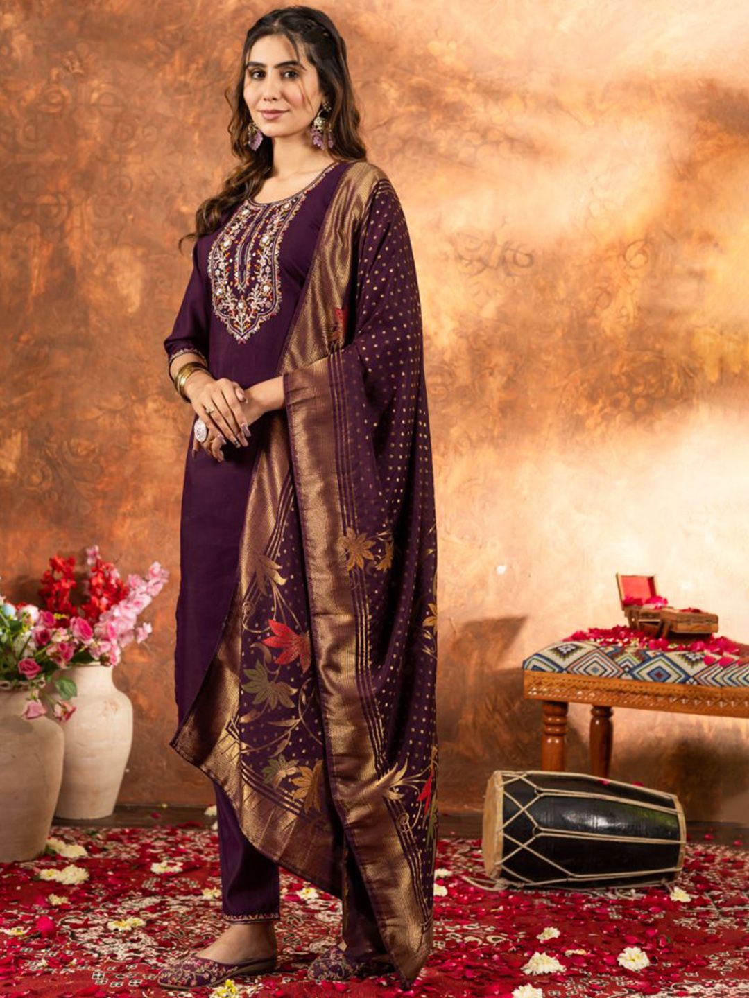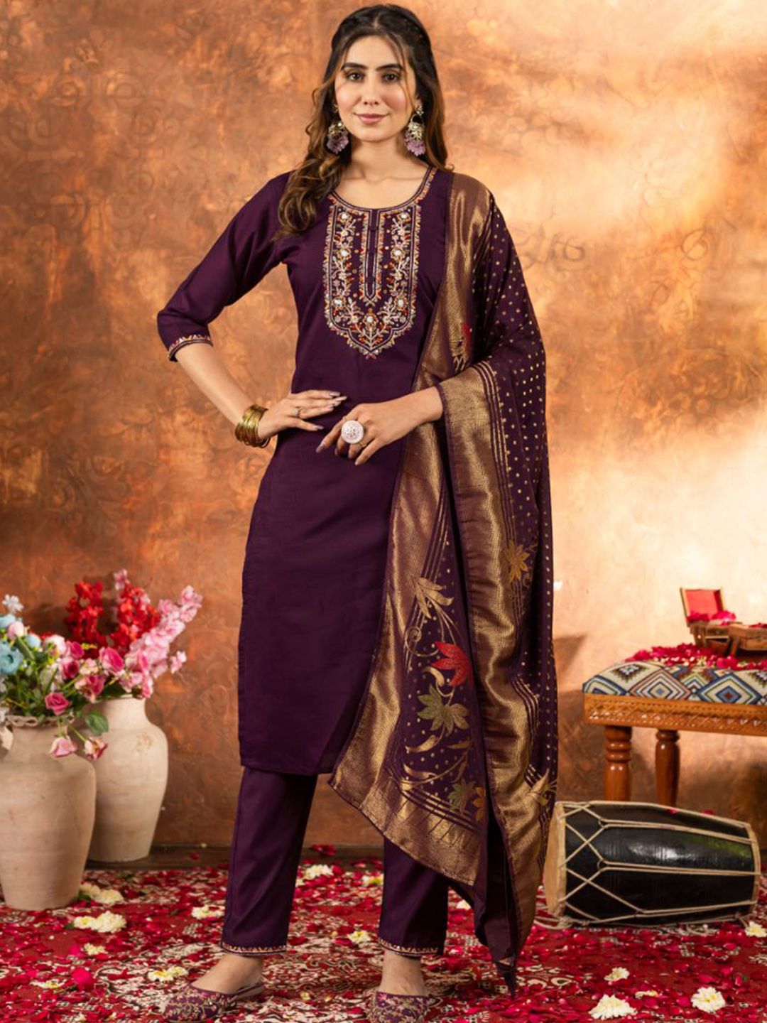 KRITVA FASHION Women Ethnic Motifs Embroidered Round Neck Kurta with Trousers & Dupatta