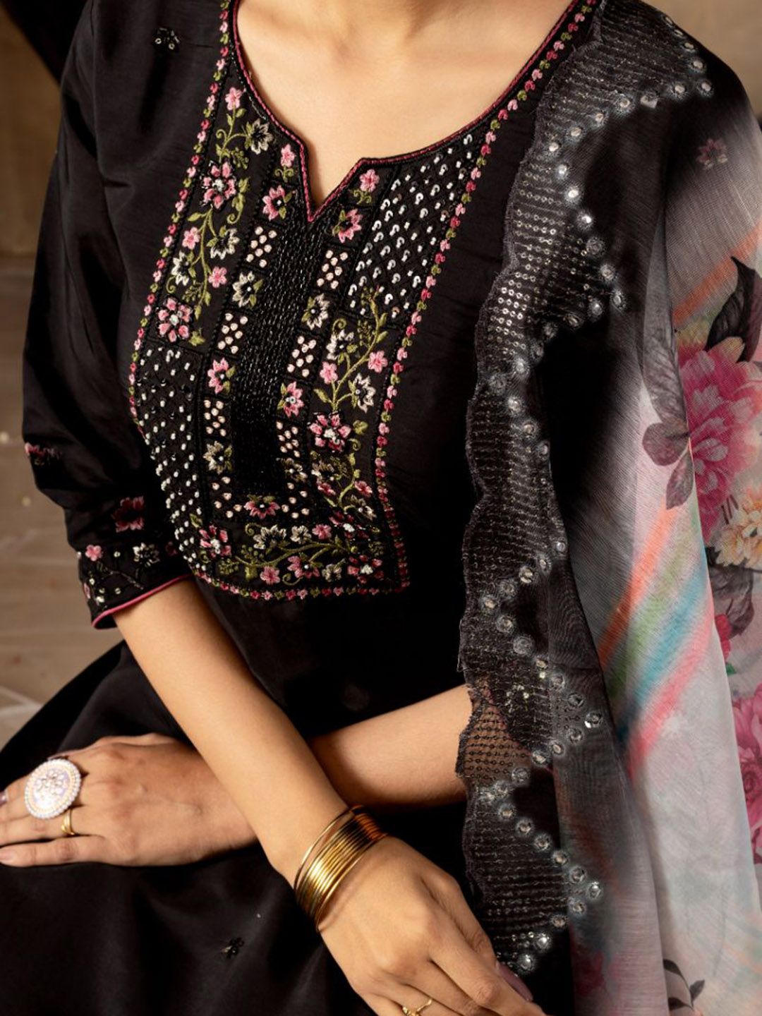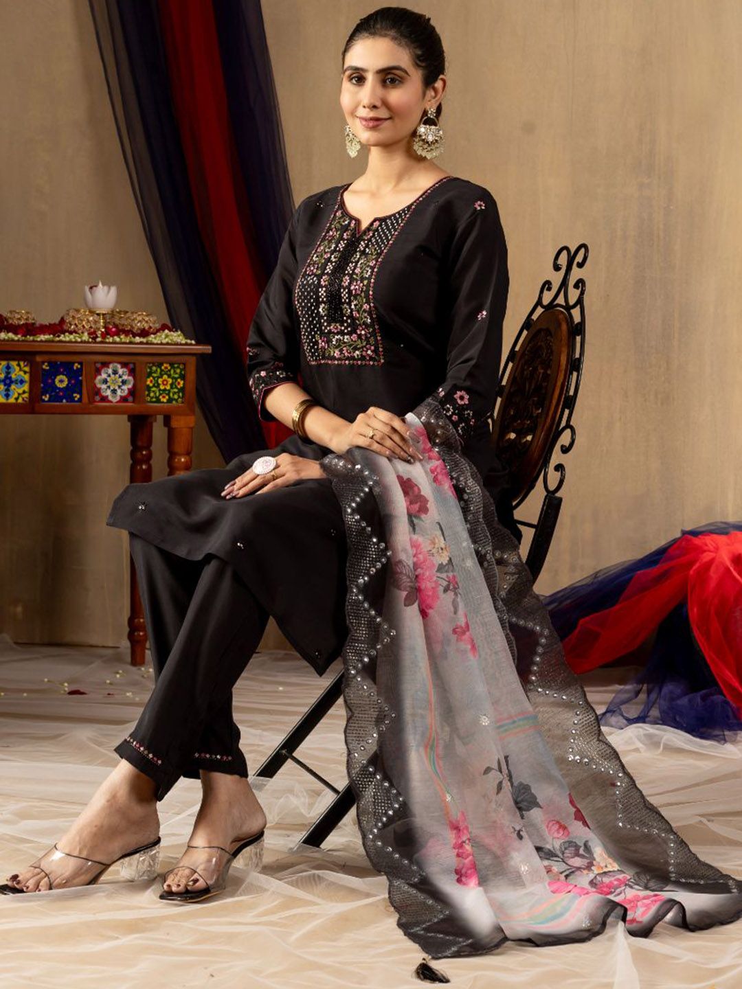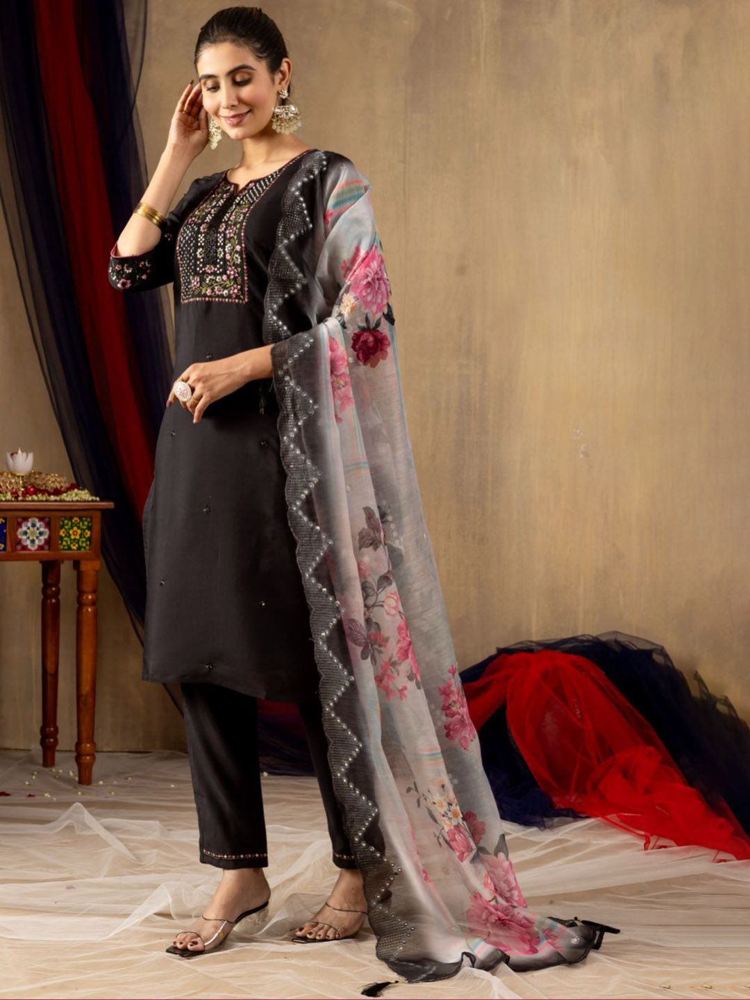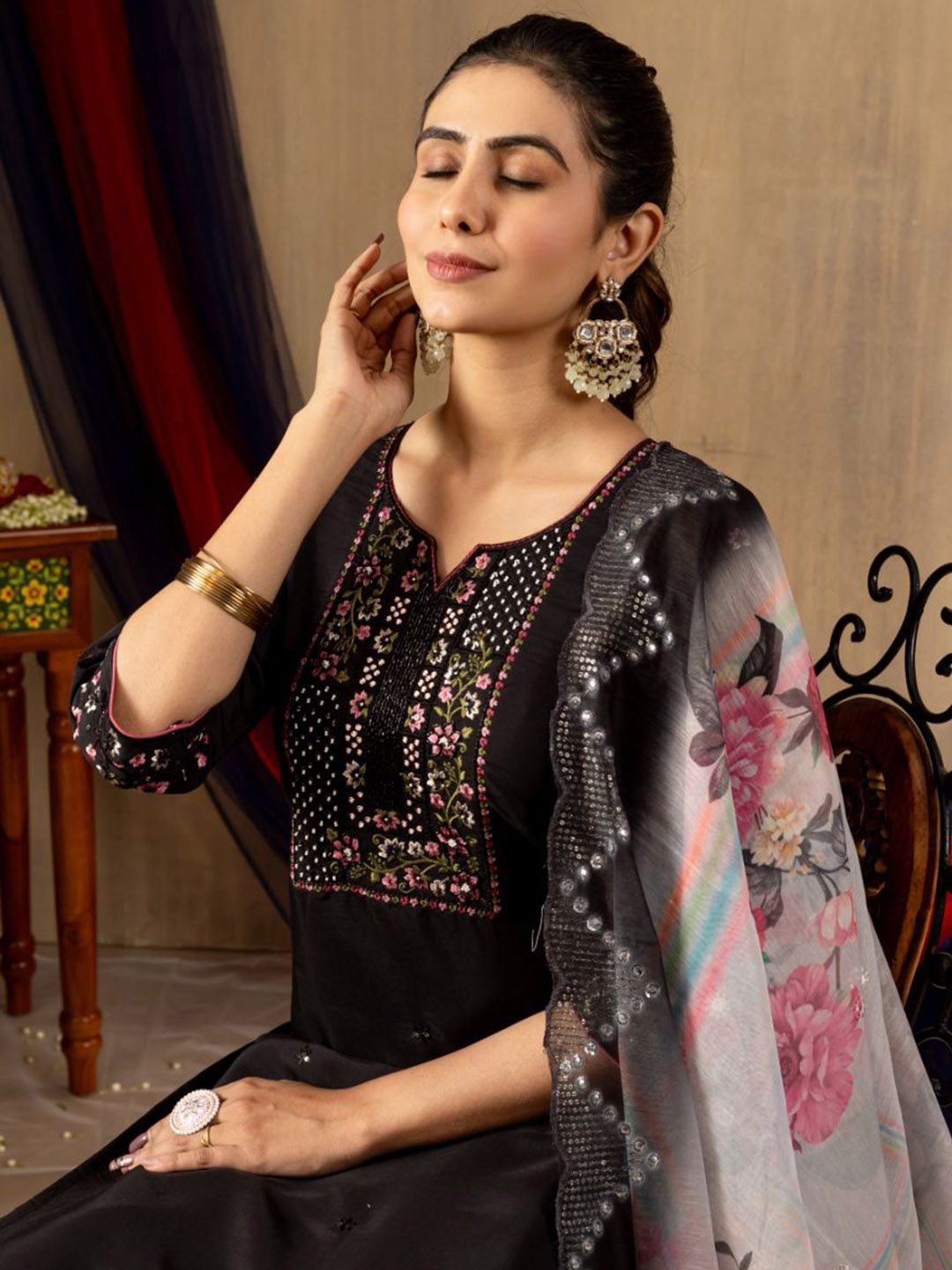 KRITVA FASHION Women Floral Embroidered Regular Thread Work Kurta with Trousers & Dupatta