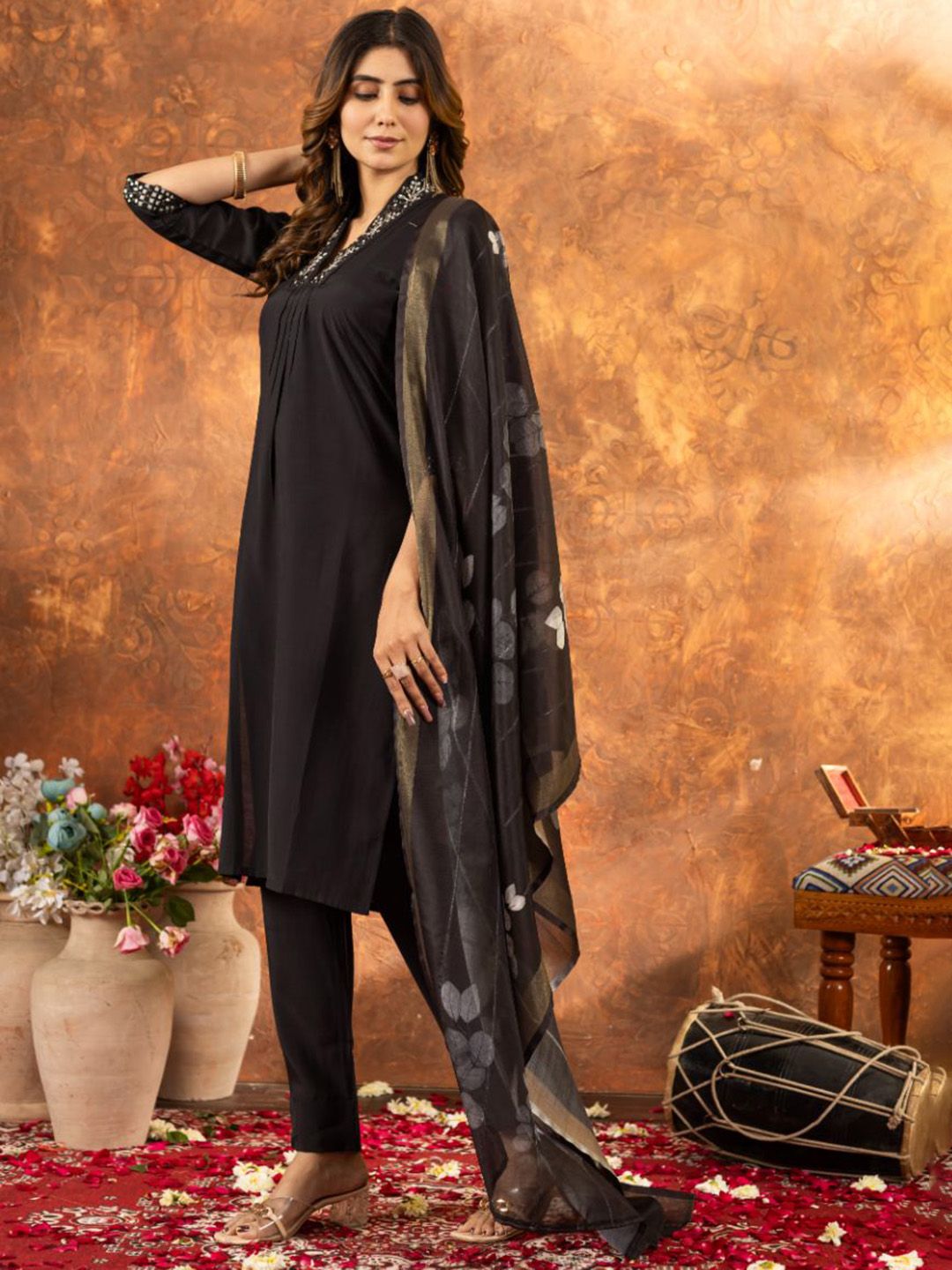 KRITVA FASHION Women Solid Kurta with Trousers & Dupatta