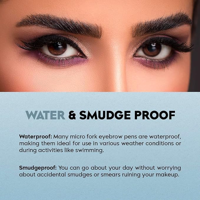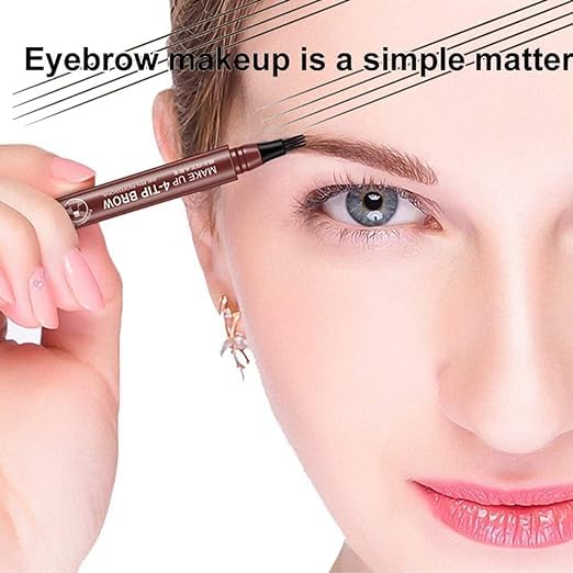 Fine sketch, professional brush head to create natural eyebrow Waterproof and sumdge proof. Waterproof 4 Points Microblading Eyebrow Pen with a Micro-Fork Tip Applicator Creates Flawless Natural Looking Eyebrows Effortlessly and Stays Realistic Hair-Like Strokes: The four-ended brushes are gentle on the skin with highly pigmented color, giving you the vivid, pigmented, realistic hair-like strokes. Genlty bring the pen to draw the cntour of eyebrow and keep color in evenly along forehead shape You draw final step for creating the vivid and nature eyebrows. Waterproof, Smudge-Proof All Day: Ensures your brow makeup lasts all day without smearing or melting through sweat / 24-hour wear smudge-proof and waterproof.