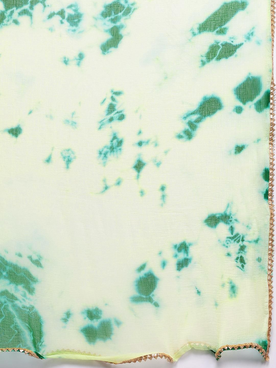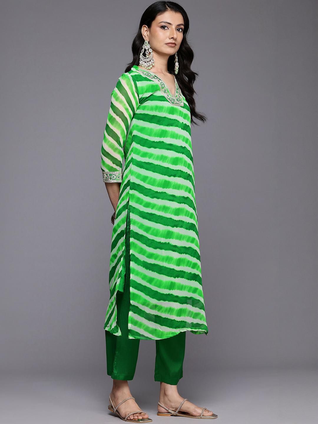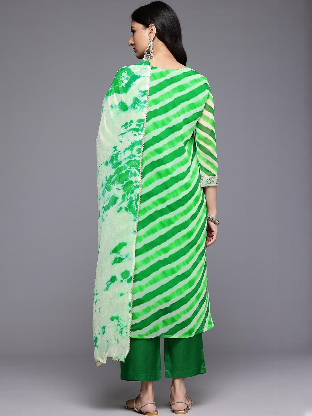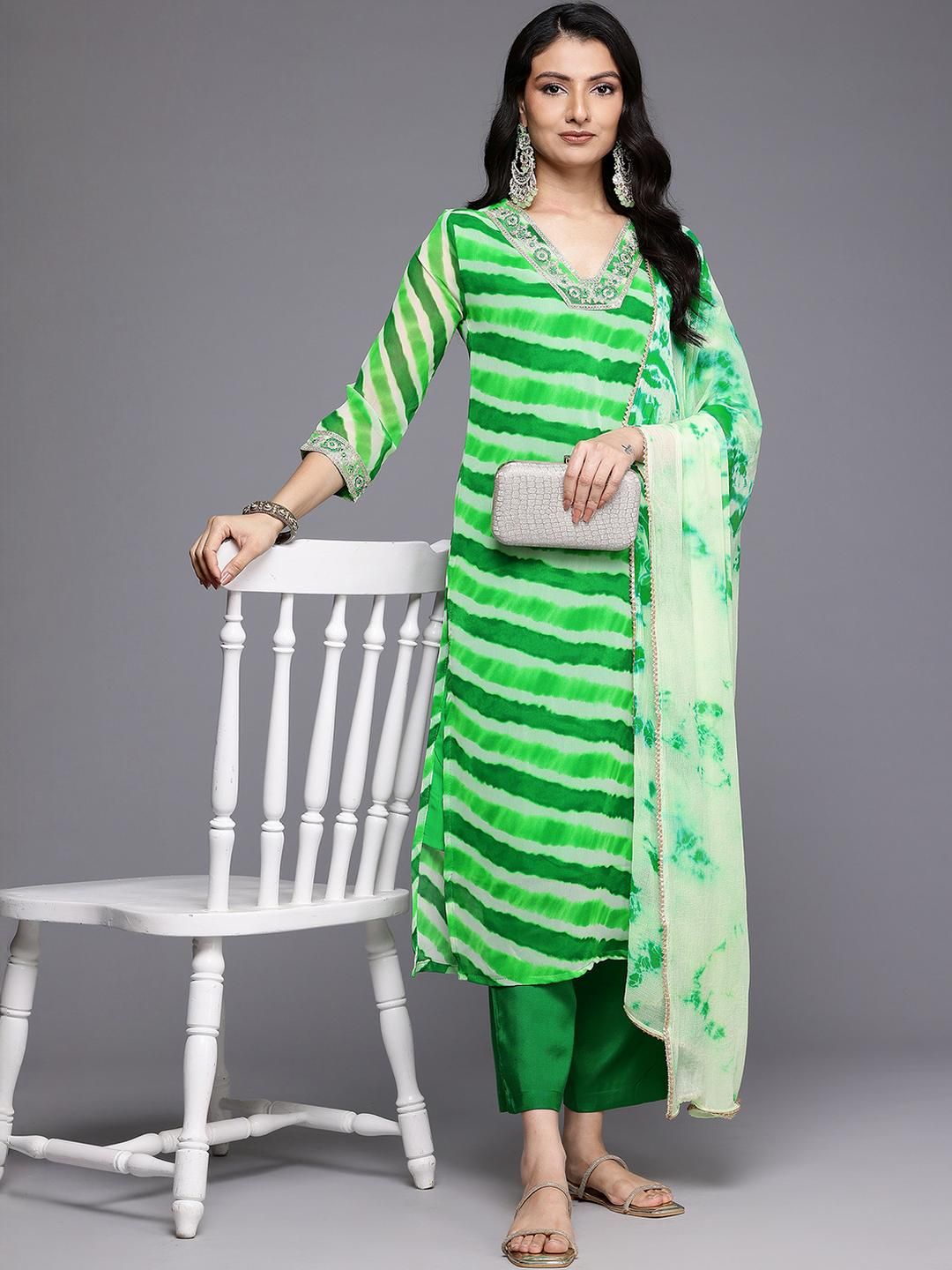 KSUT Women Leheriya Printed Regular Sequinned Silk Georgette Kurta with Trousers & With Dupatta