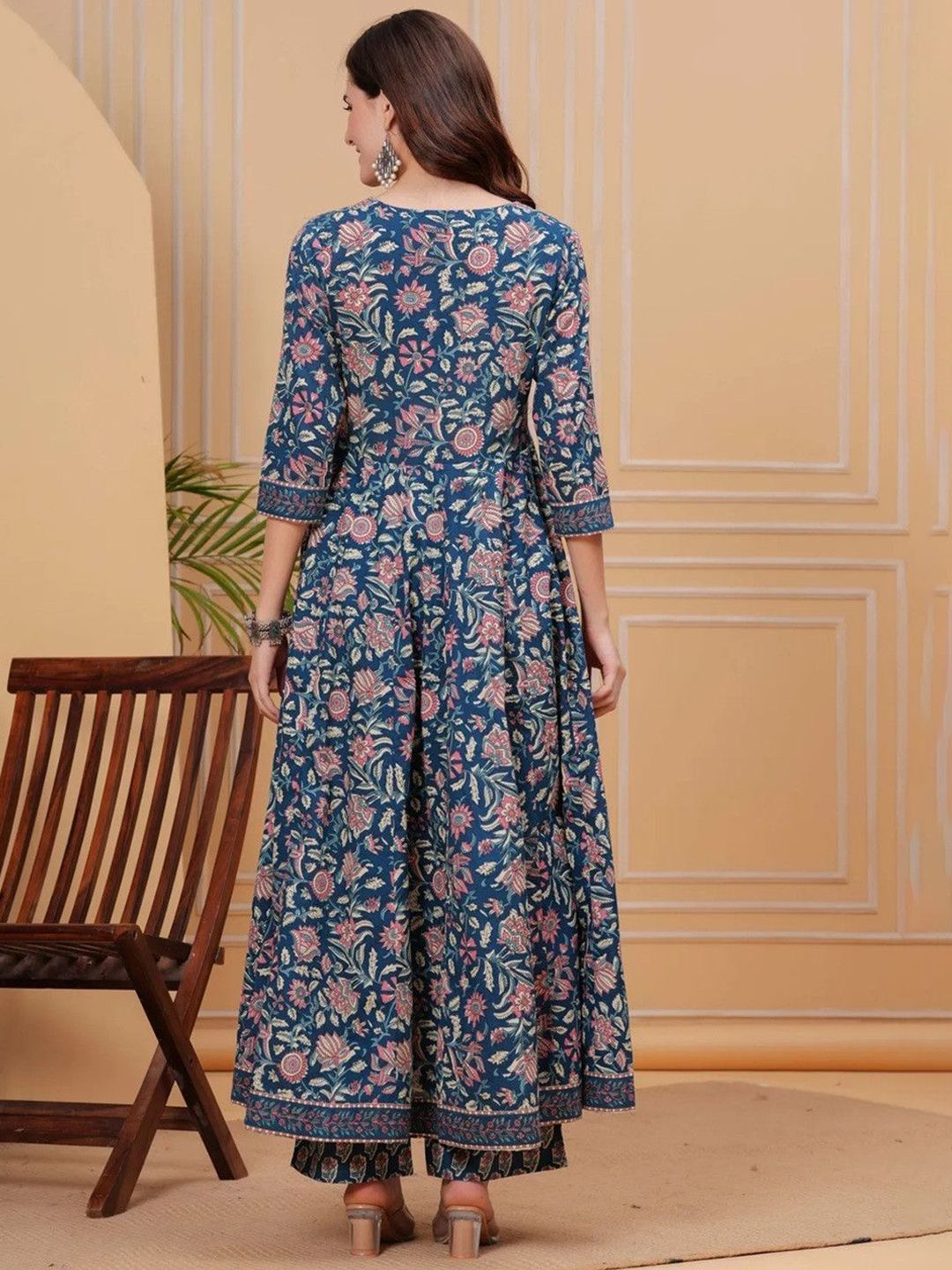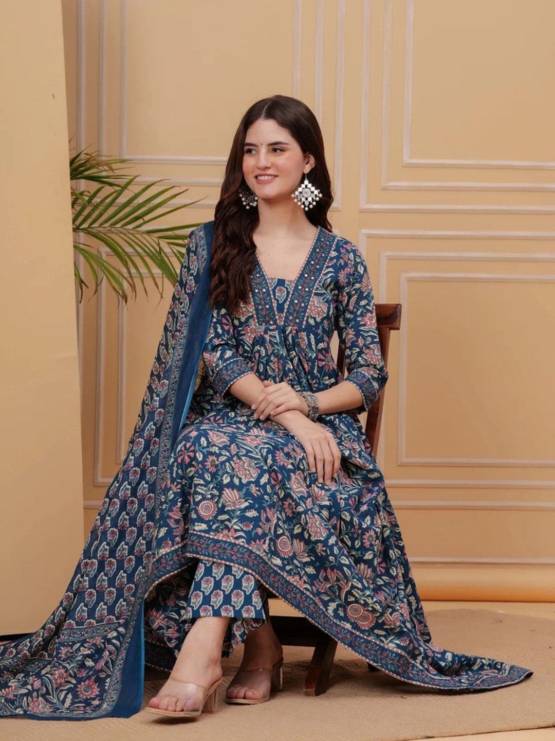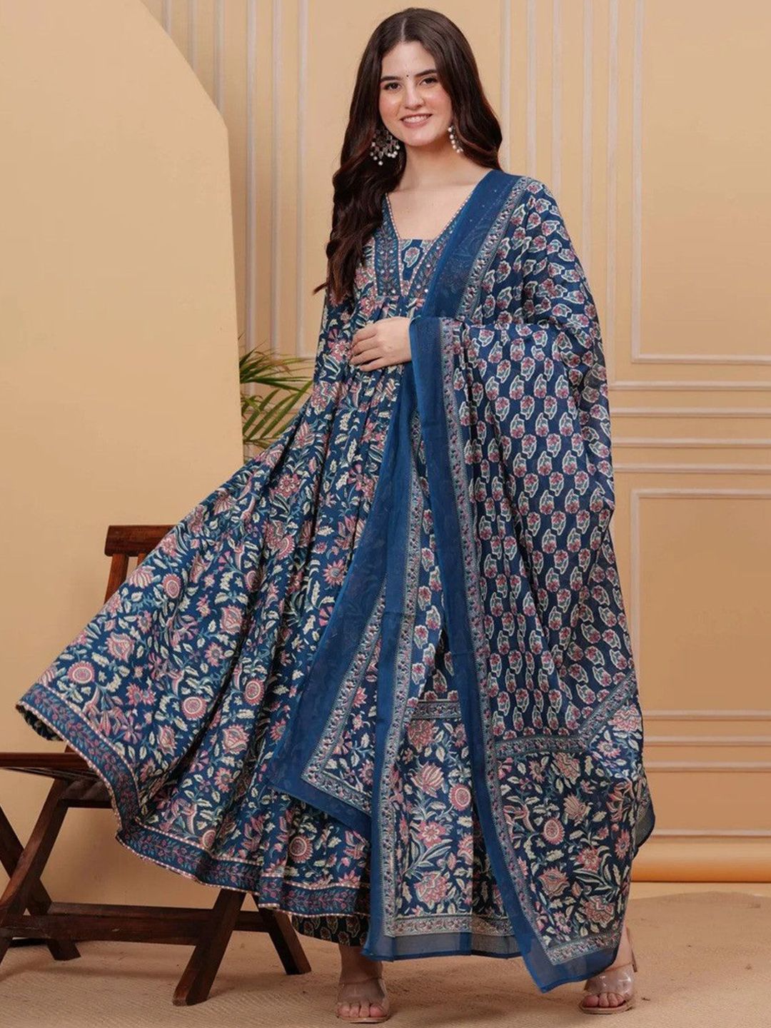 KULDEVYANI Women Floral Printed Anarkali Kurta with Trousers & Dupatta