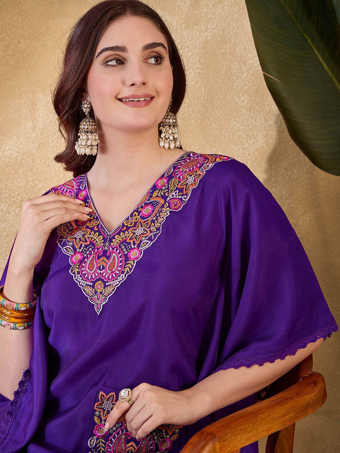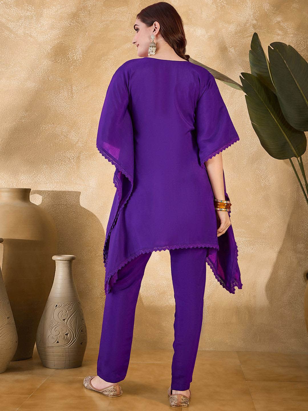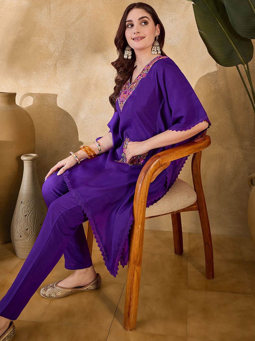 Kvsfab Women Ethnic Motifs Embroidered Kaftan Kurta with Trousers