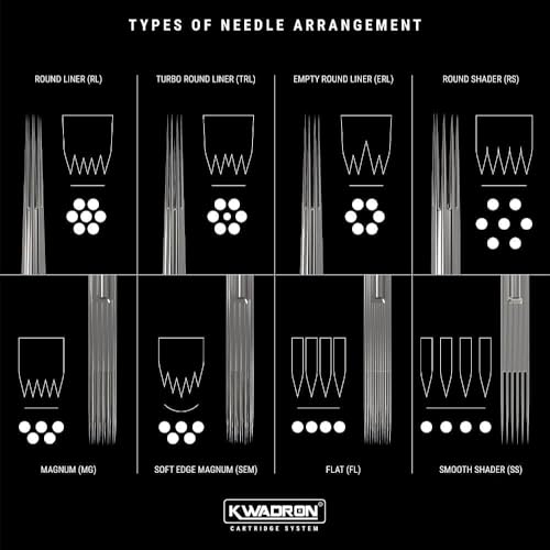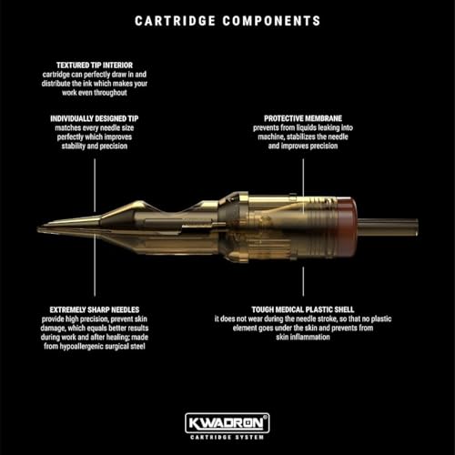 ?????????????? ?????????????????????? – Kwadron tattoo needles cartridges are precisely made with high-quality materials for optimal performance so that you can achieve beautiful results. ???????????????? ?????? ???????????? ?????????????????? – Our tattoo cartridges boast a unique stabilizing system for accuracy and optimal stability in the tattooing process. ??????????????-?????????? ?????????????? – We designed these tattoo cartridge needles with medical-grade plastic housing, which helps reduce friction between the needle grouping and the tip. ???????????????? ???????? ?????? ???????????????? – The tattoo ink cartridges employ a full membrane that protects from ink backflow. The razor-sharp steel needles are designed with utmost precision. ?????? ?????? ???? 20 ?????????????? – You get one box of 20 Kwadron needle cartridges for tattooing. Expertly designed, we take pride in providing cutting-edge tattoo equipment.
