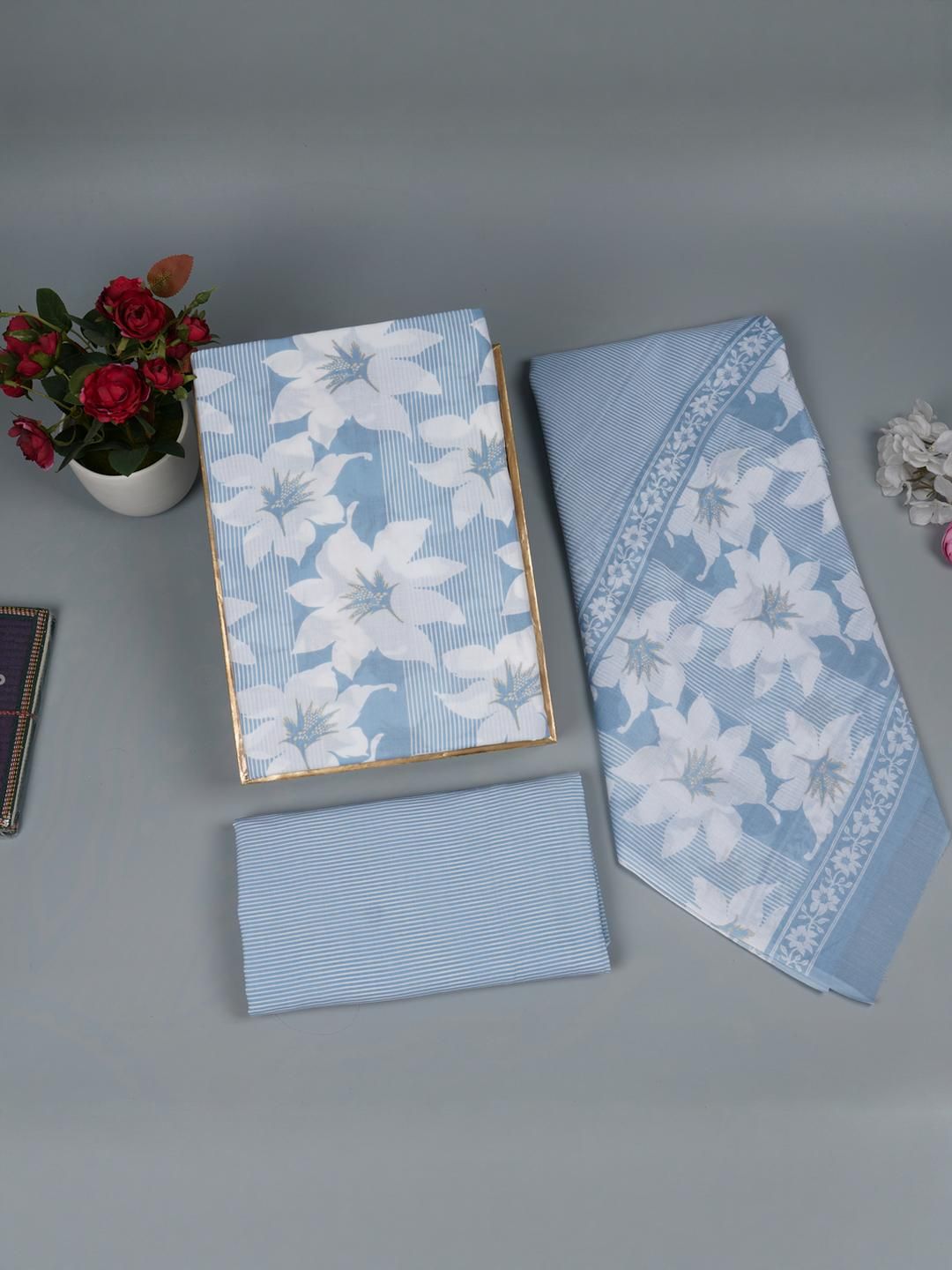 Kwatchi Women Blue With Floral Printed Pure Cotton Unstitched Dress Material